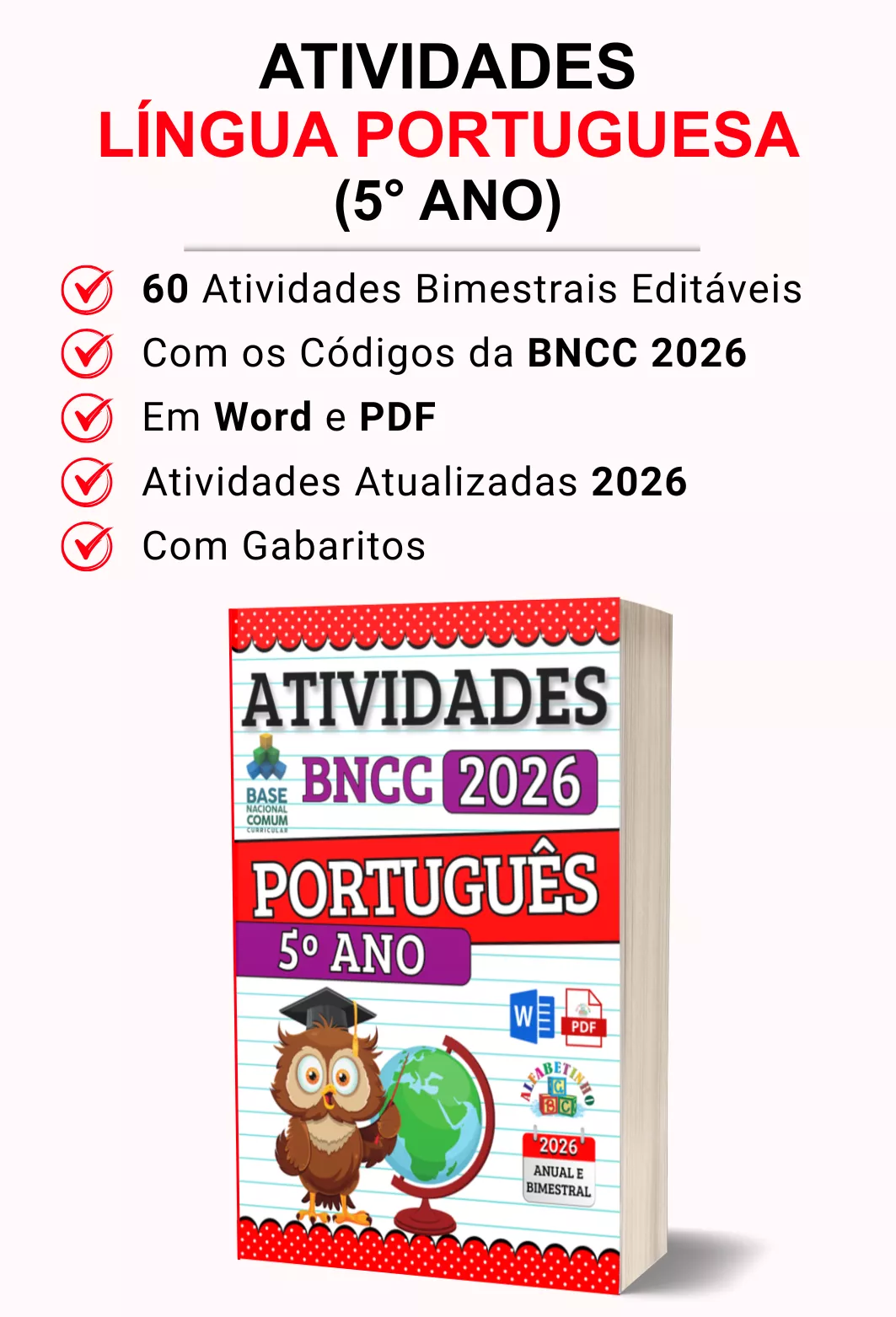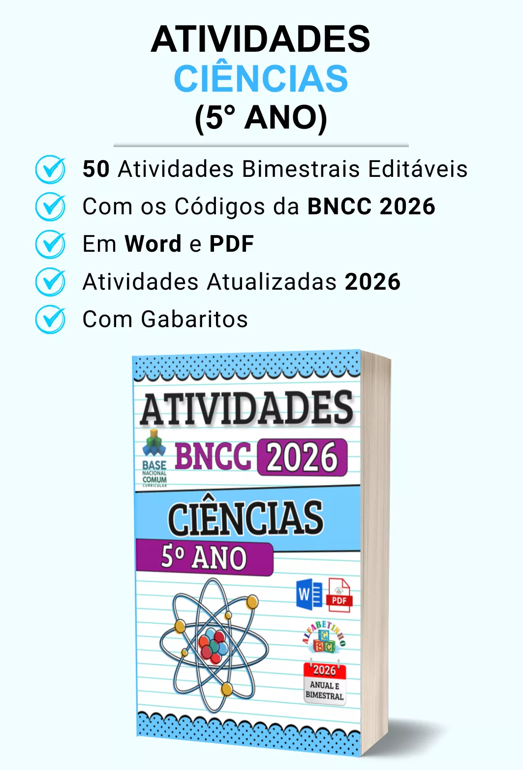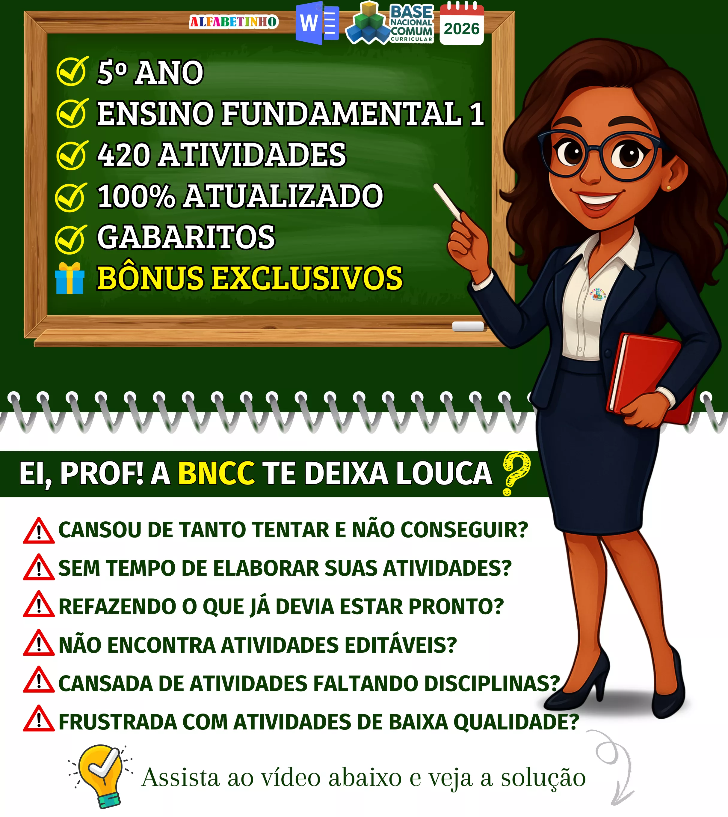 Mais de 420 atividades com gabaritos e alinhadas à BNCC 2026;