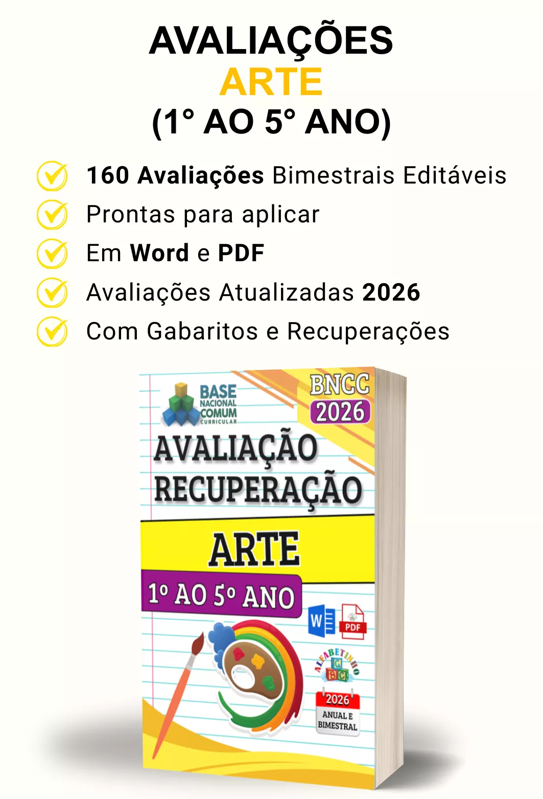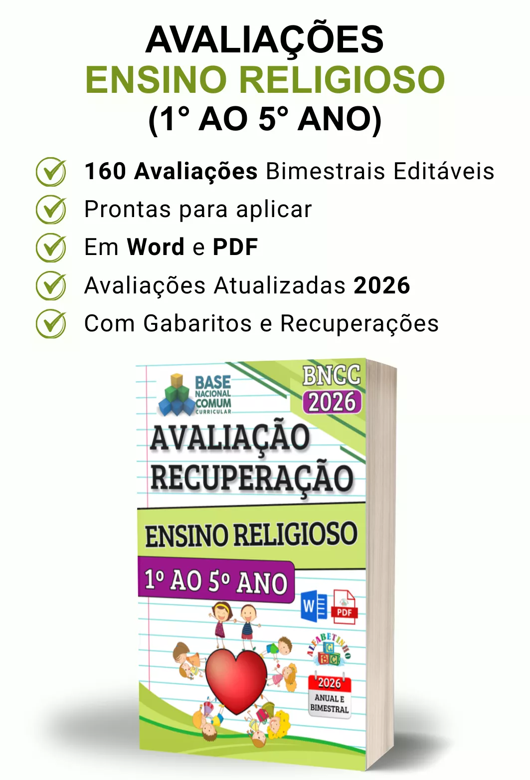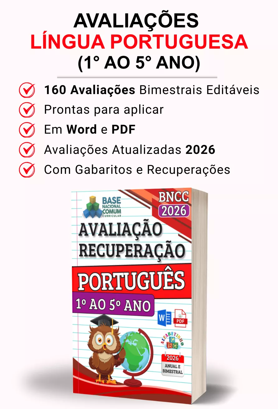 Avaliações completas, atualizadas conforme a BNCC 2026, totalmente editáveis no Word e adaptáveis à sua realidade escolar. Praticidade, qualidade e inspiração para professores que amam ensinar!