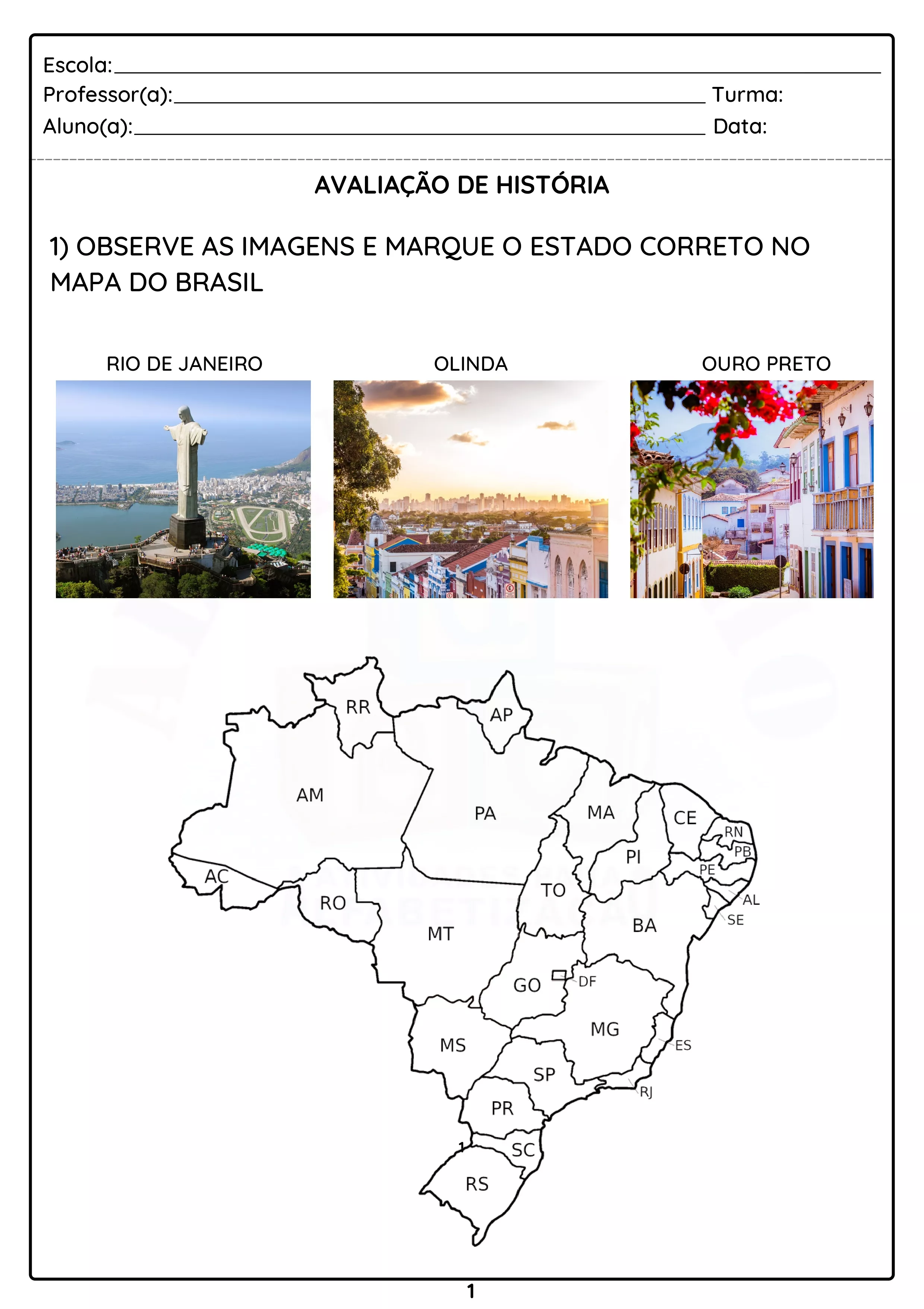 EXEMPLOS DE AVALIAÇÕES: