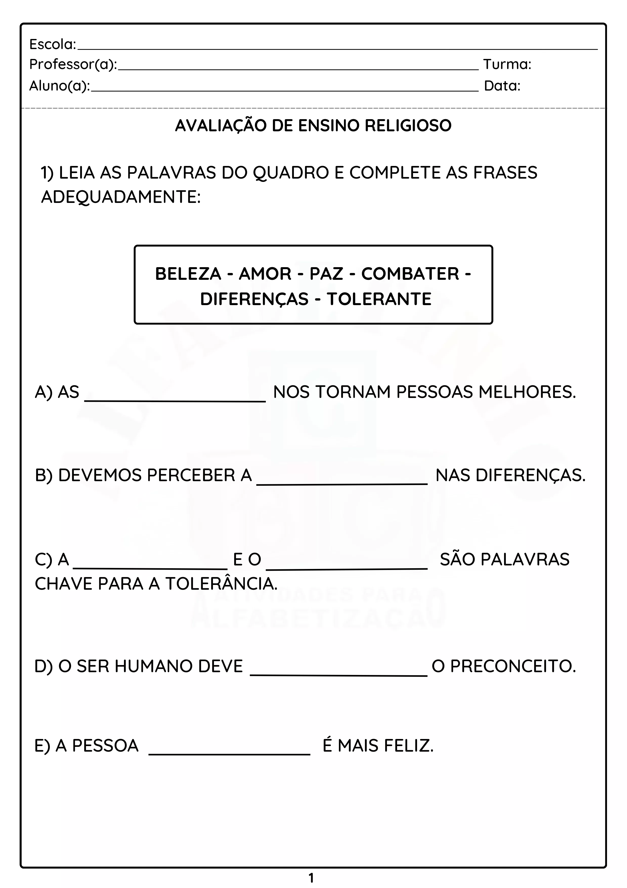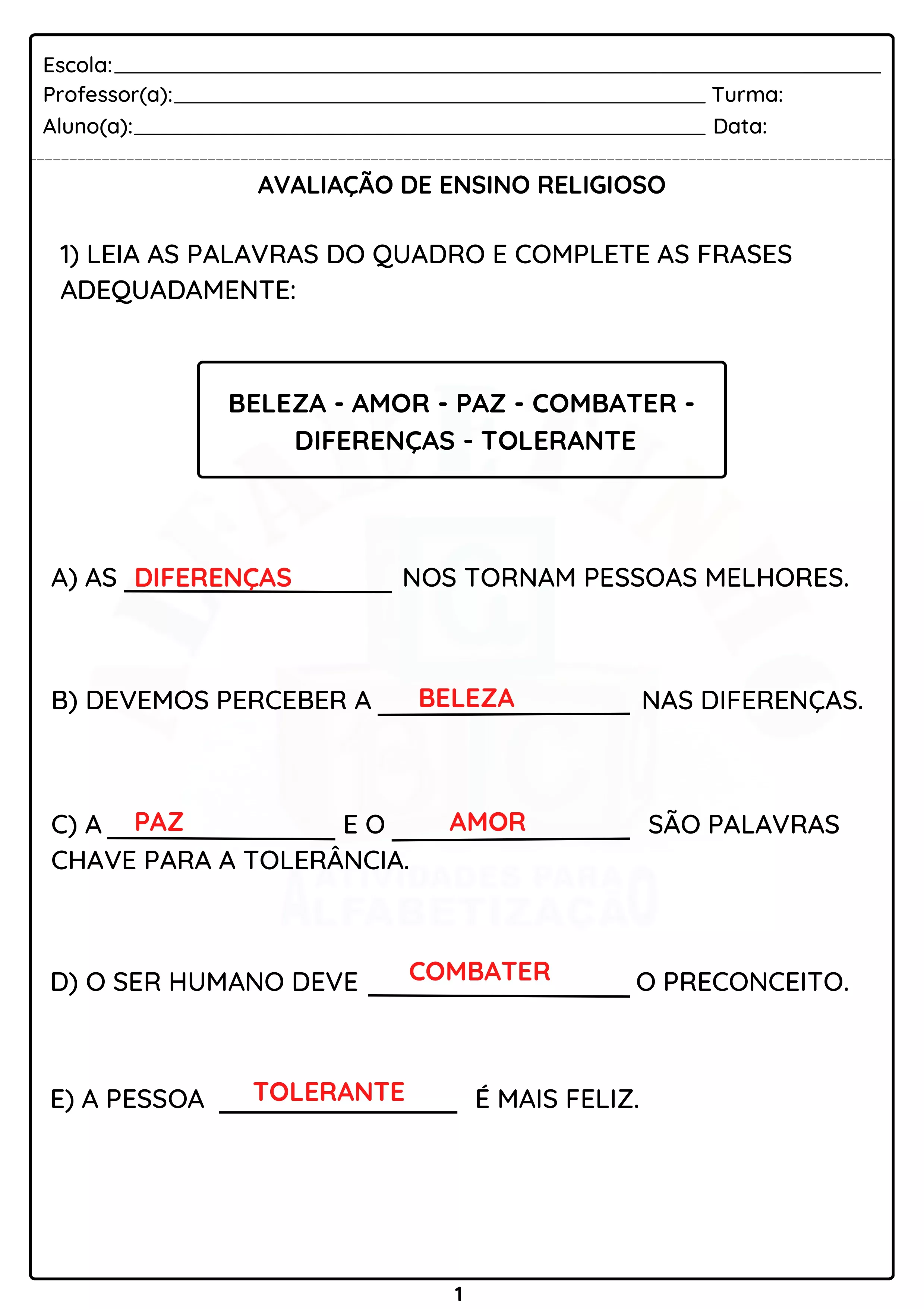 Essa é apenas uma pequena amostra das Avaliações. O material completo contém mais de 256 Avaliações prontas, e todos elas editáveis!