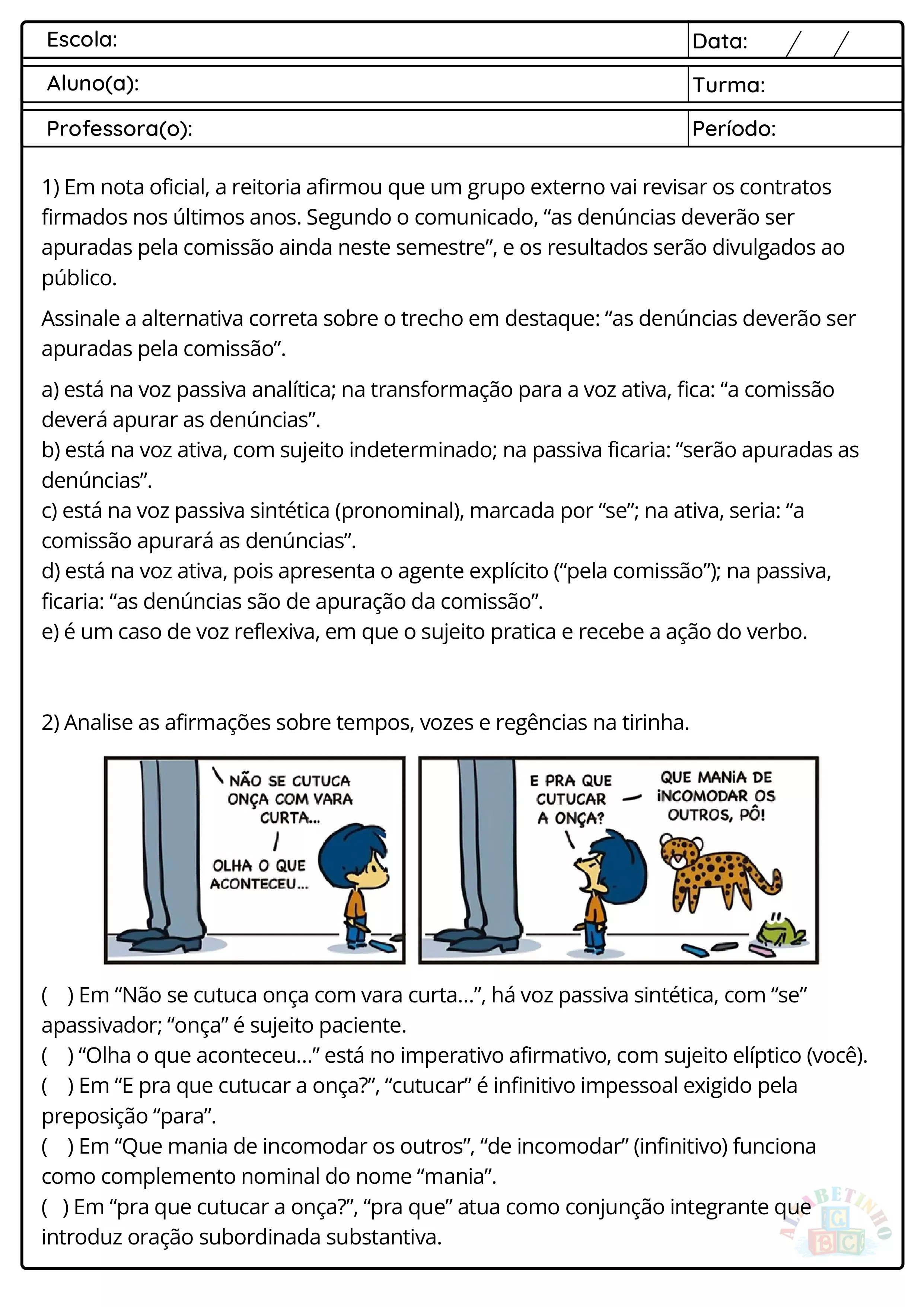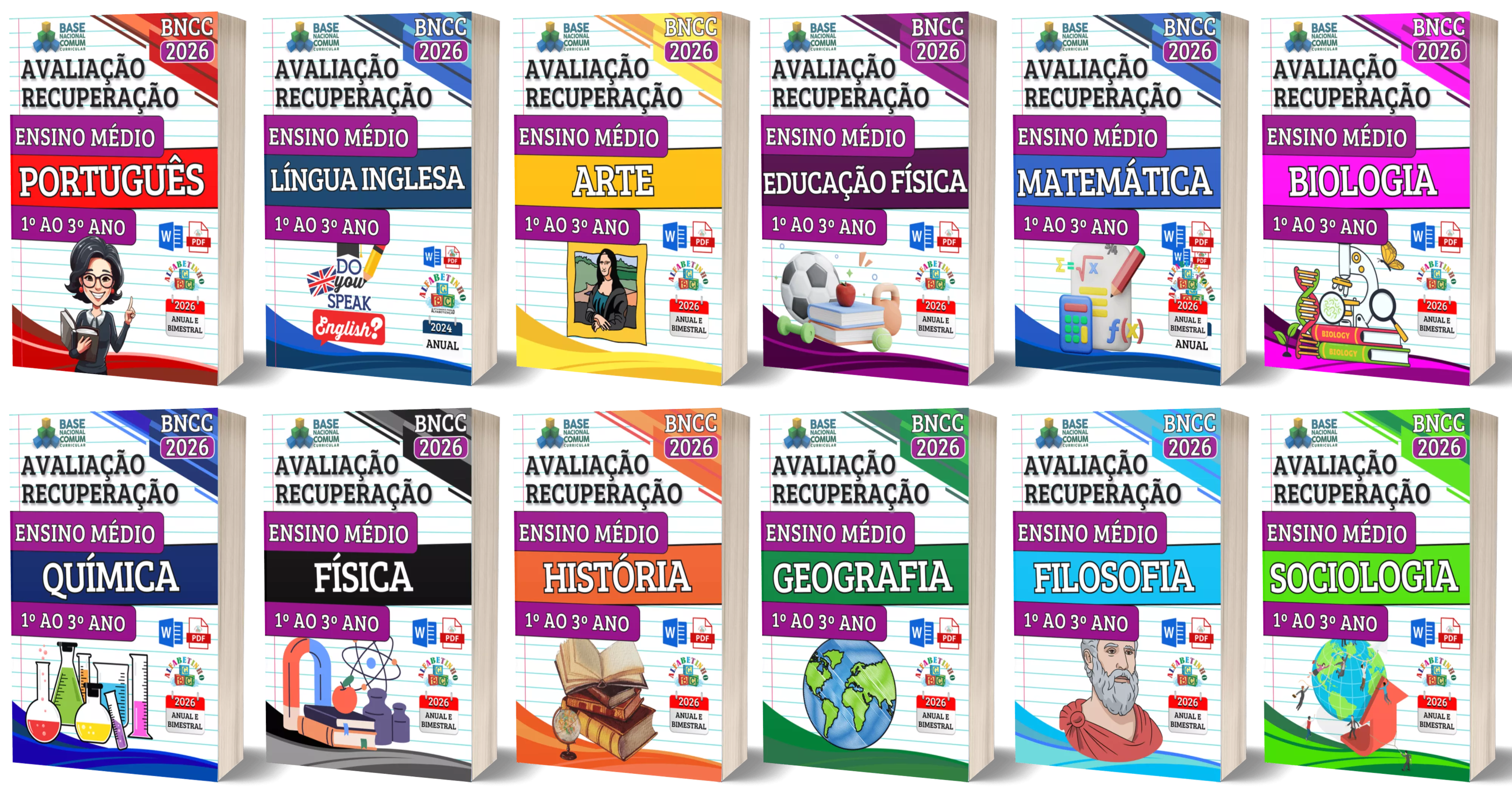 Avaliações anuais e bimestrais completas, atualizadas conforme a