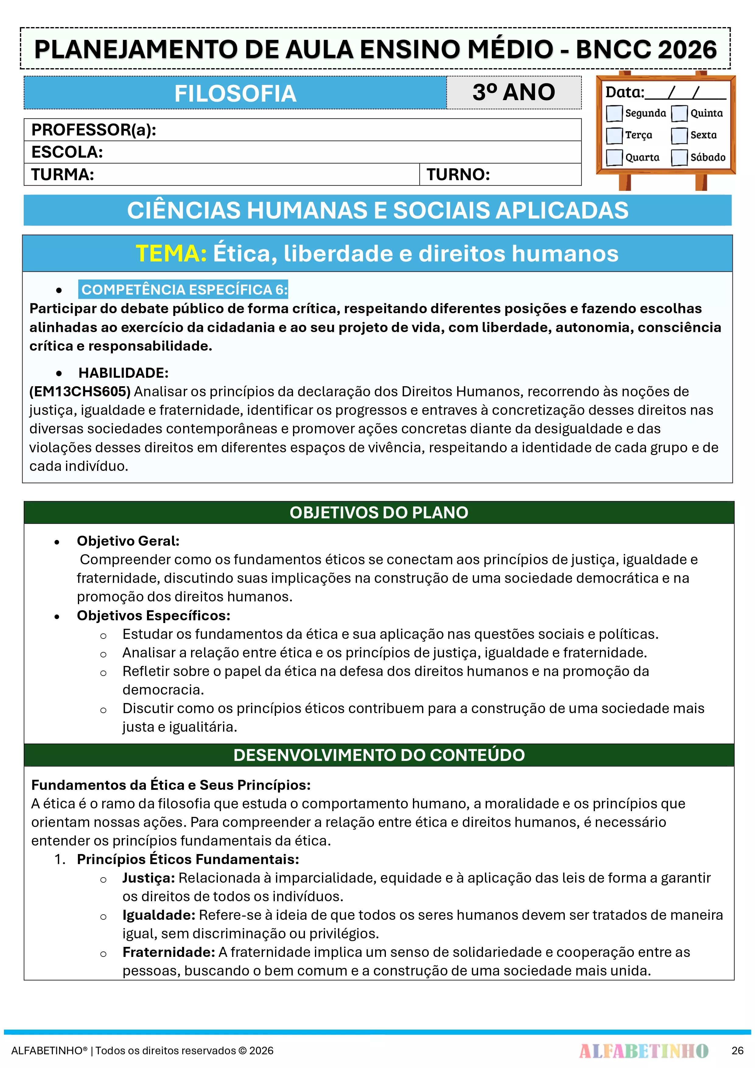 Desenvolvido com base nas diretrizes da Base Nacional Comum Curricular 2026, garantindo o alinhamento com as exigências educacionais atuais.