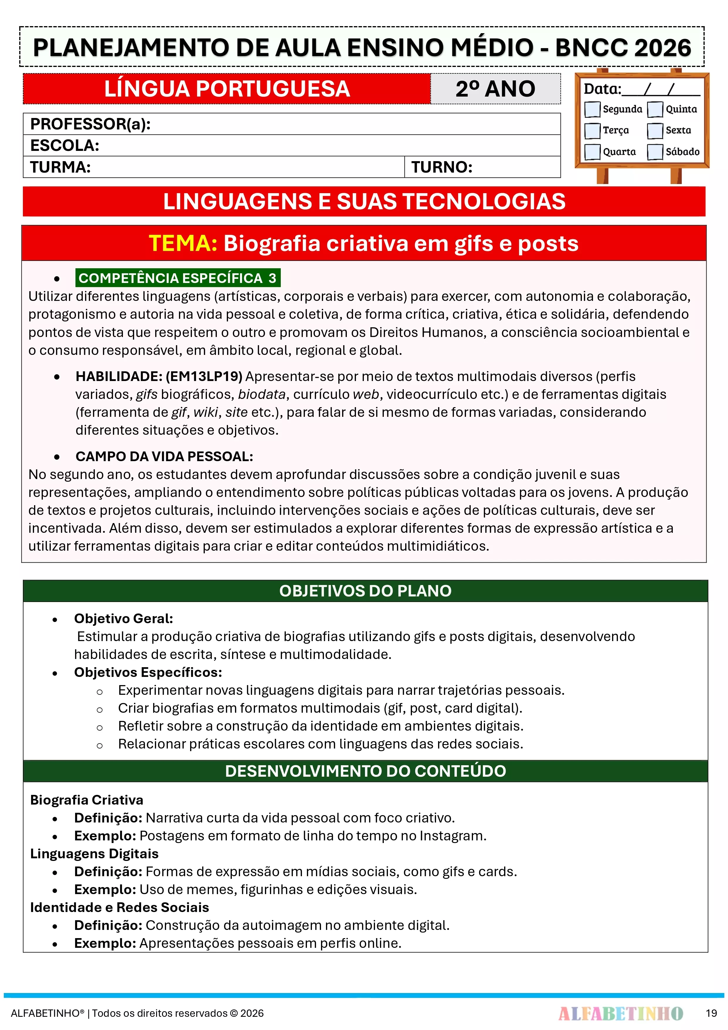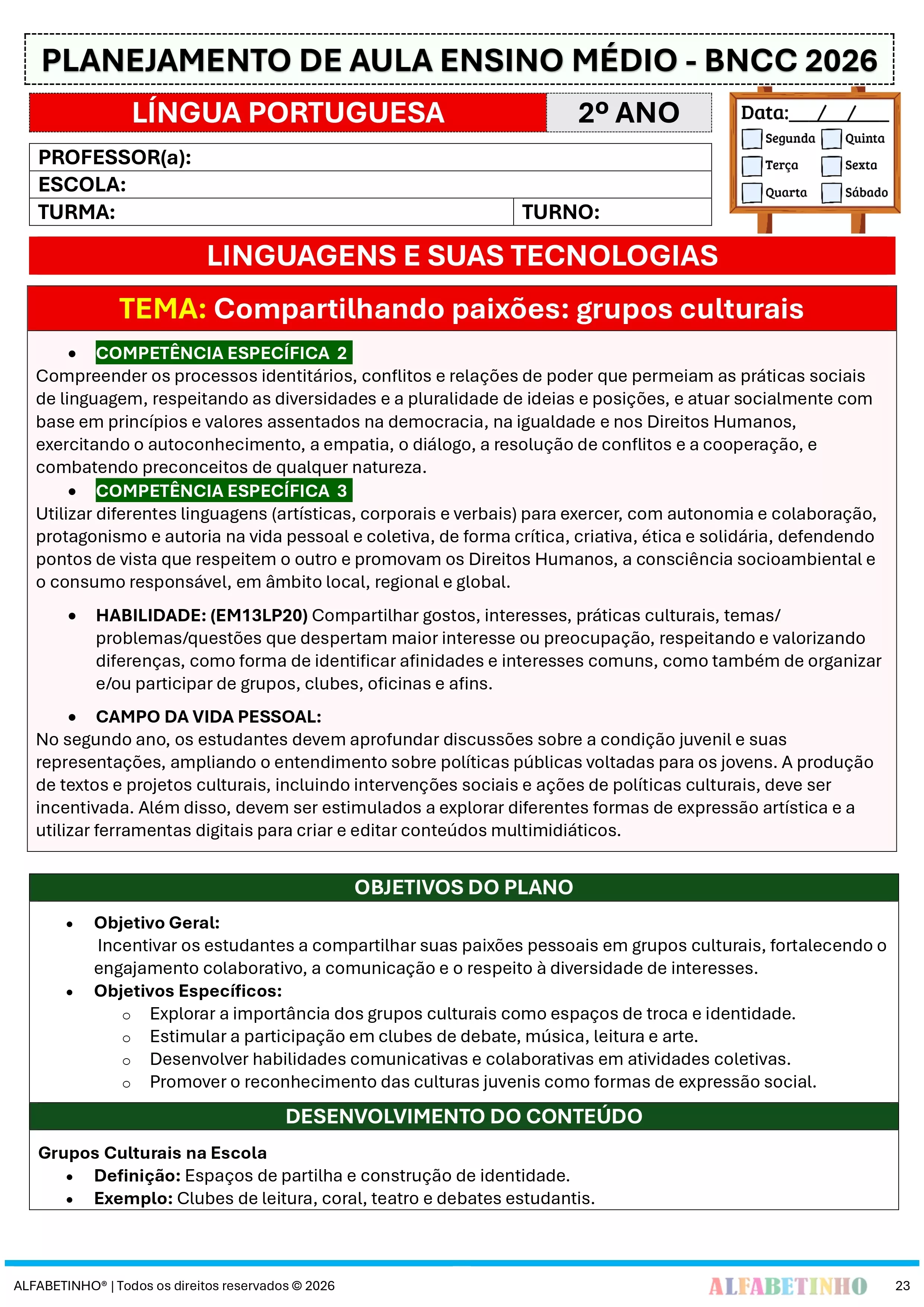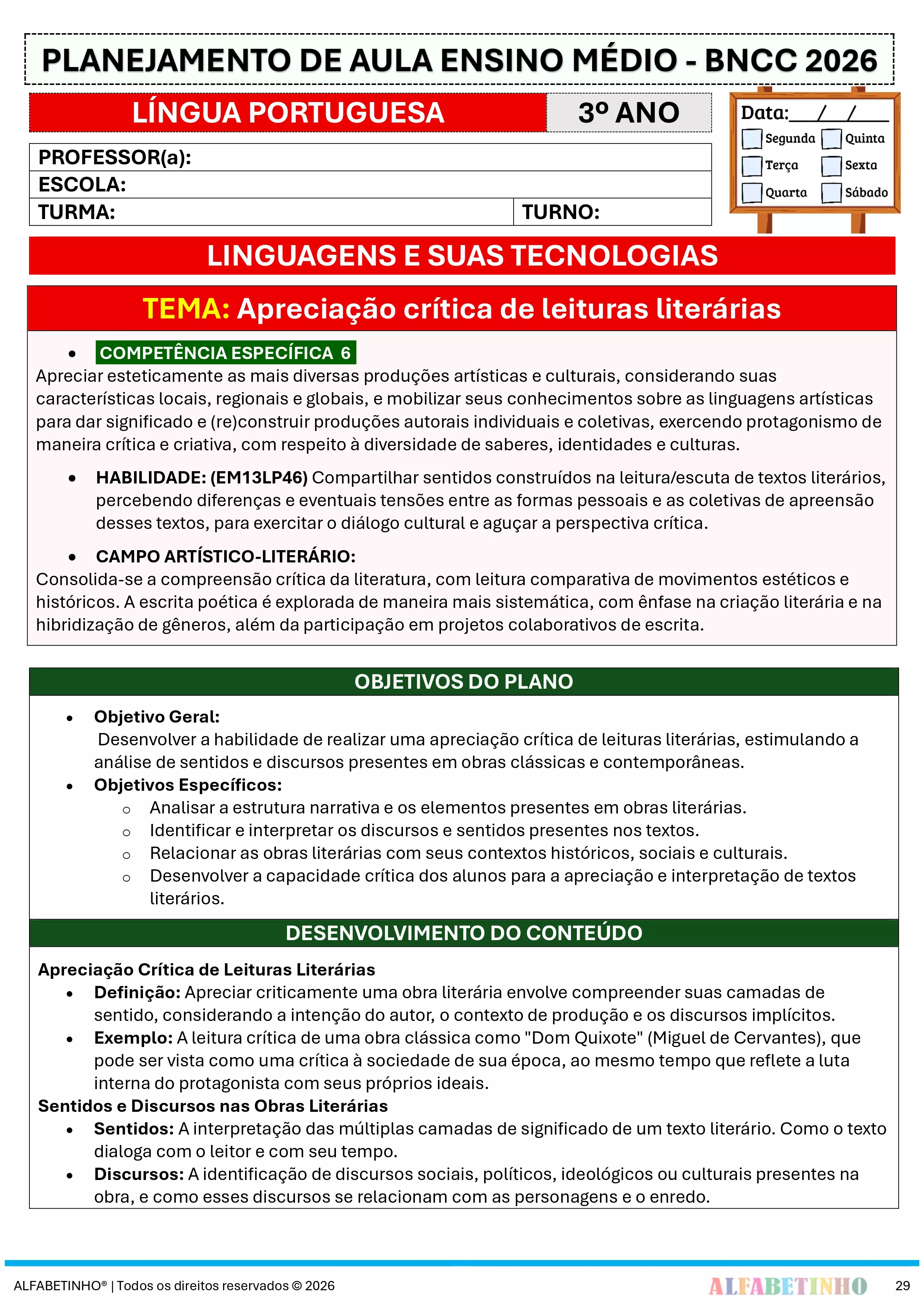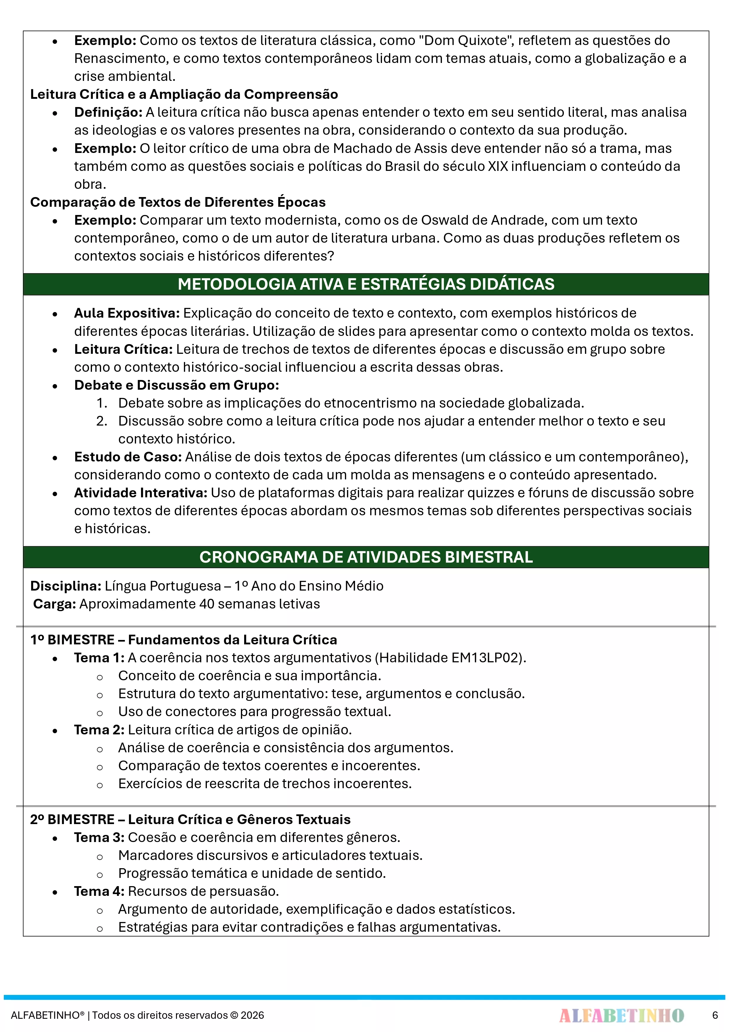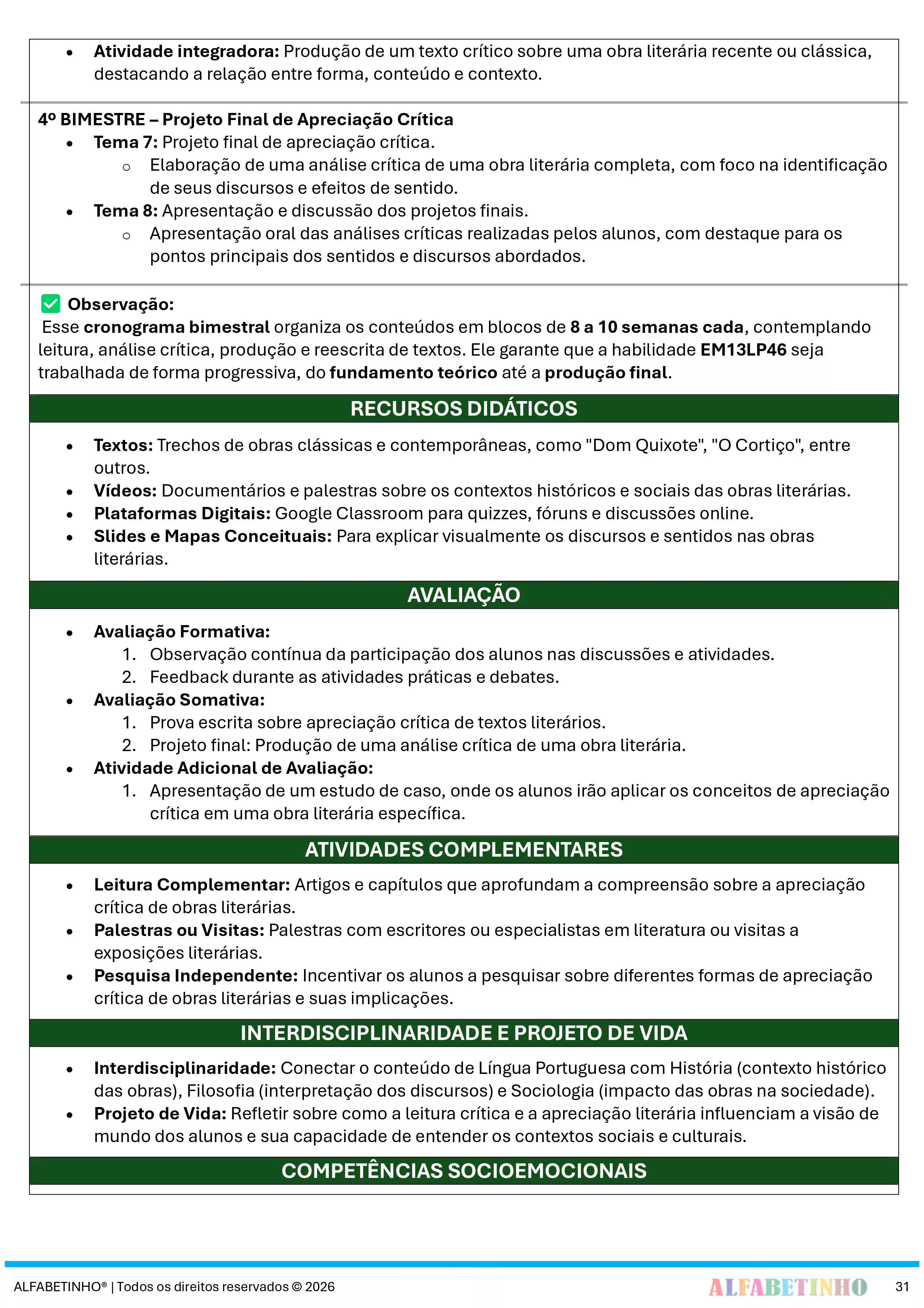 Desenvolvido com base nas diretrizes da Base Nacional Comum Curricular 2026, garantindo o alinhamento com as exigências educacionais atuais.