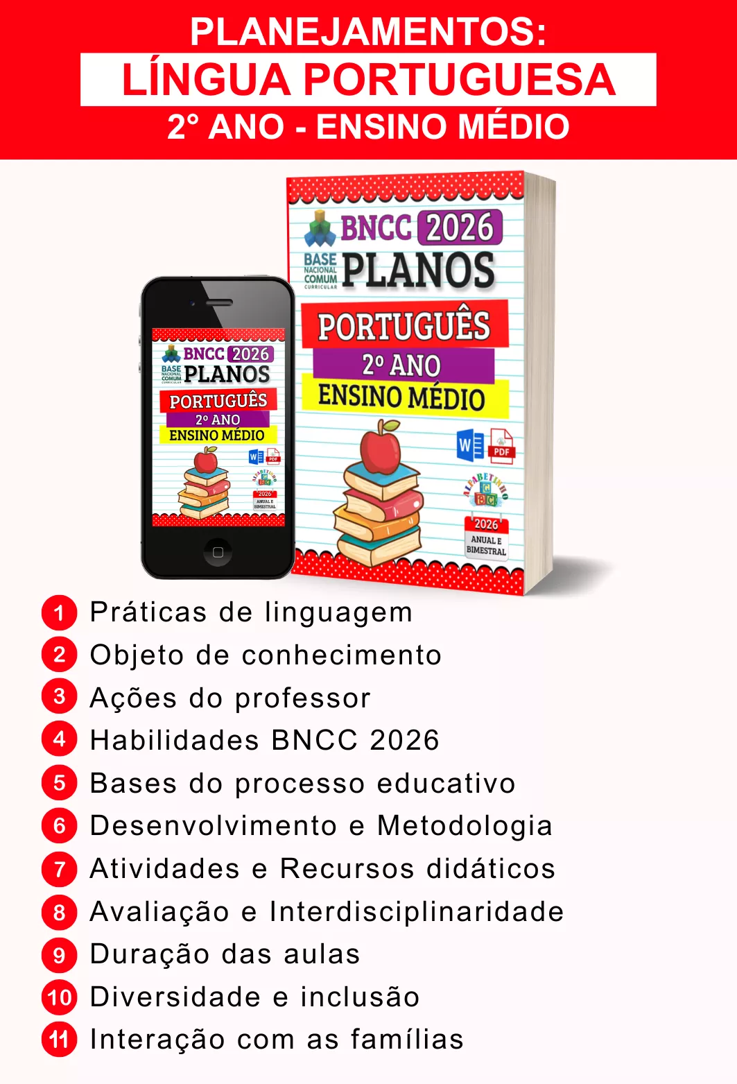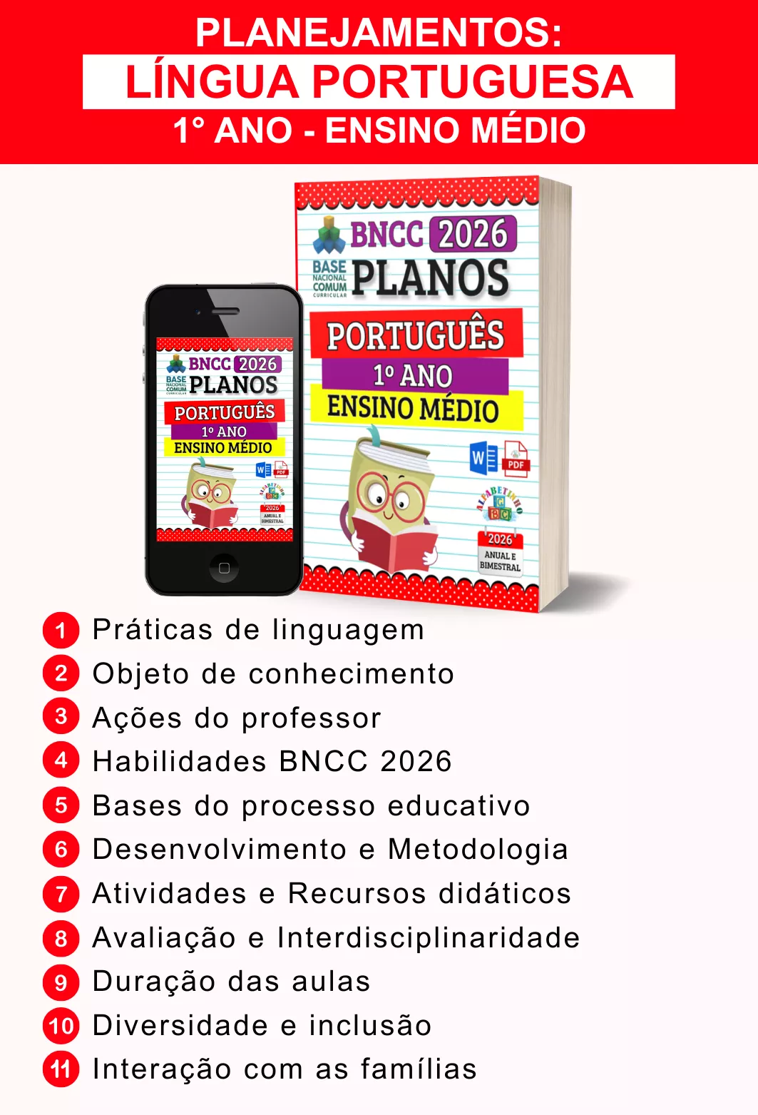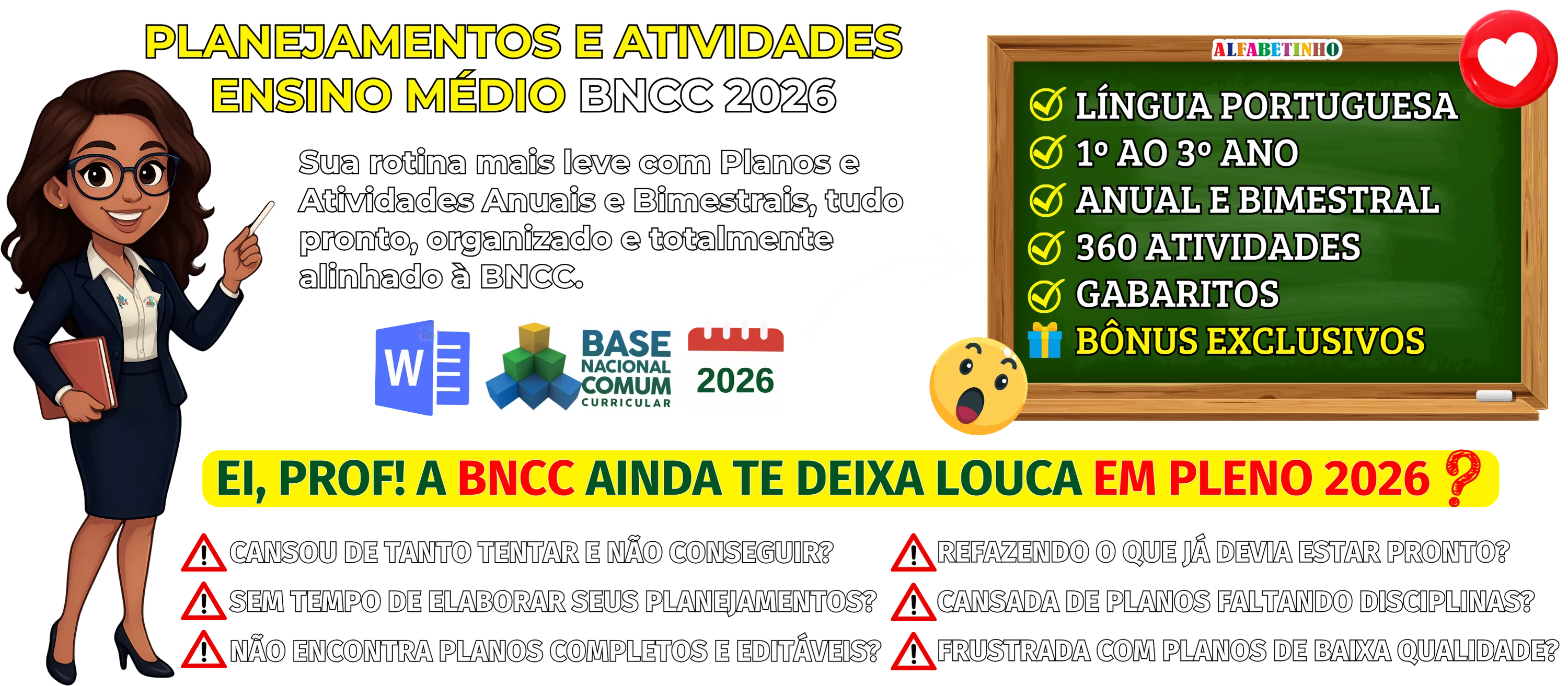 BNCC 2026, totalmente editáveis no Word e adaptáveis à sua realidade escolar. Praticidade, qualidade e inspiração para professores que amam ensinar!