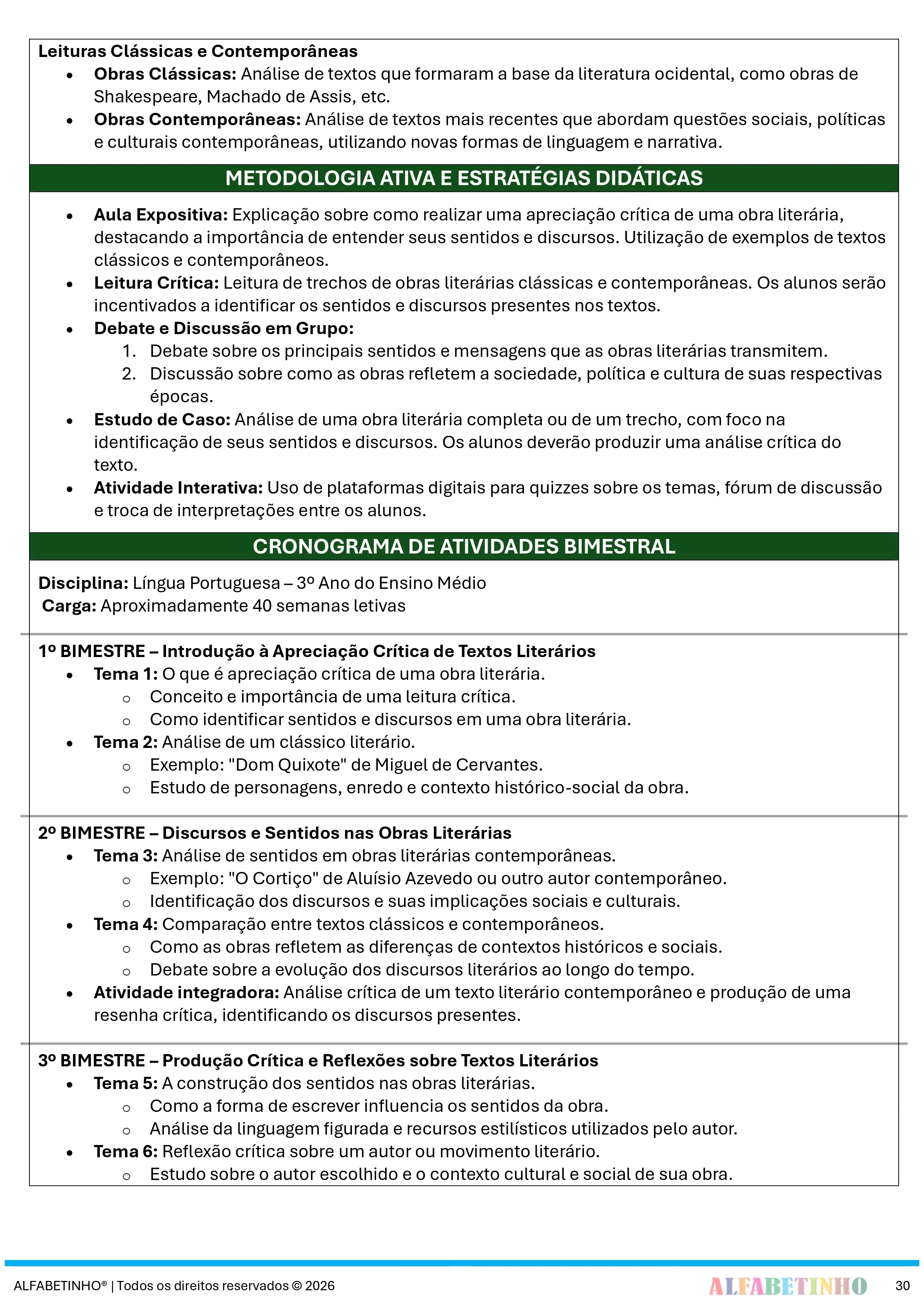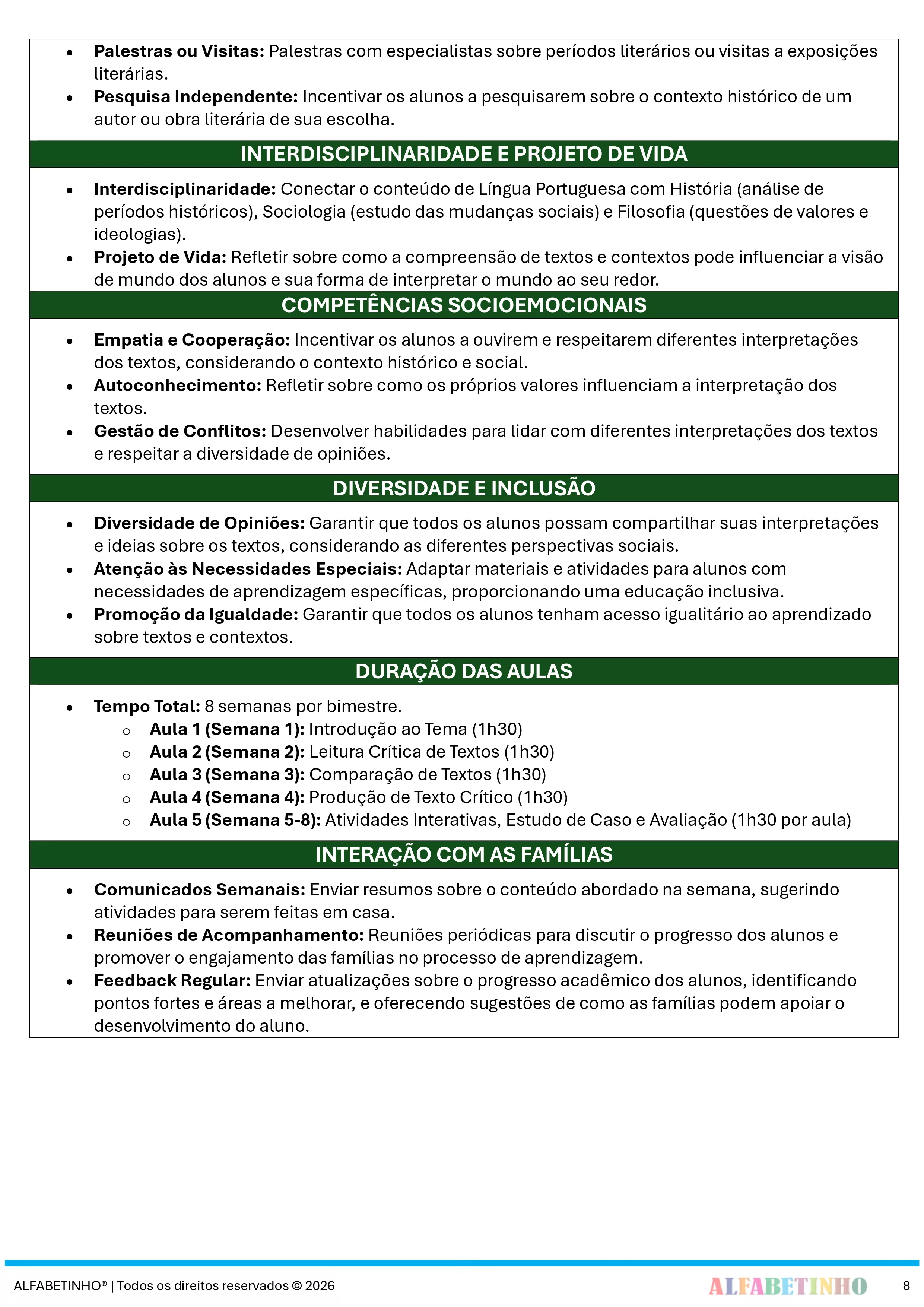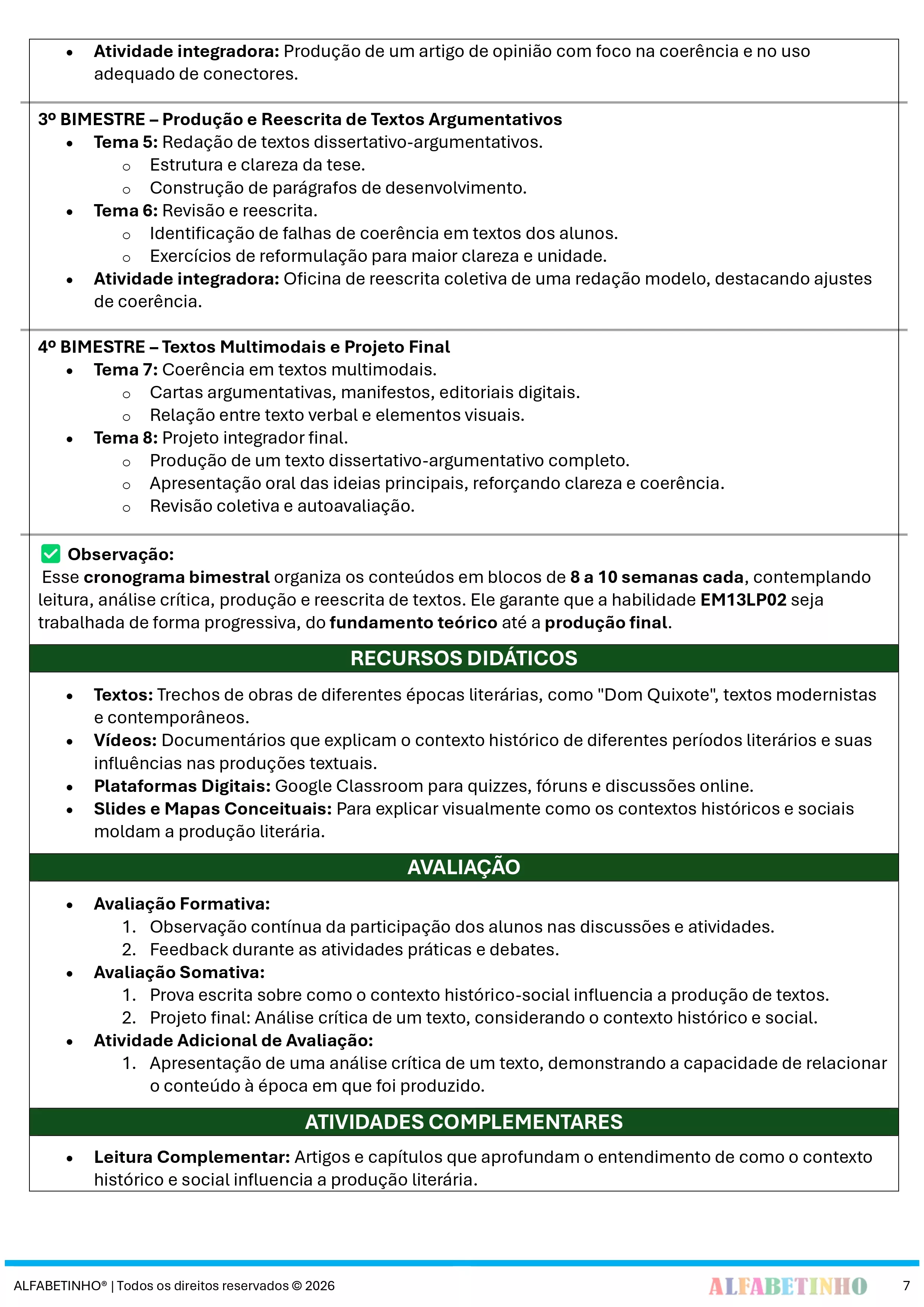 ✓ Planos Anuais e Bimestrais, prontos e editáveis em Word;