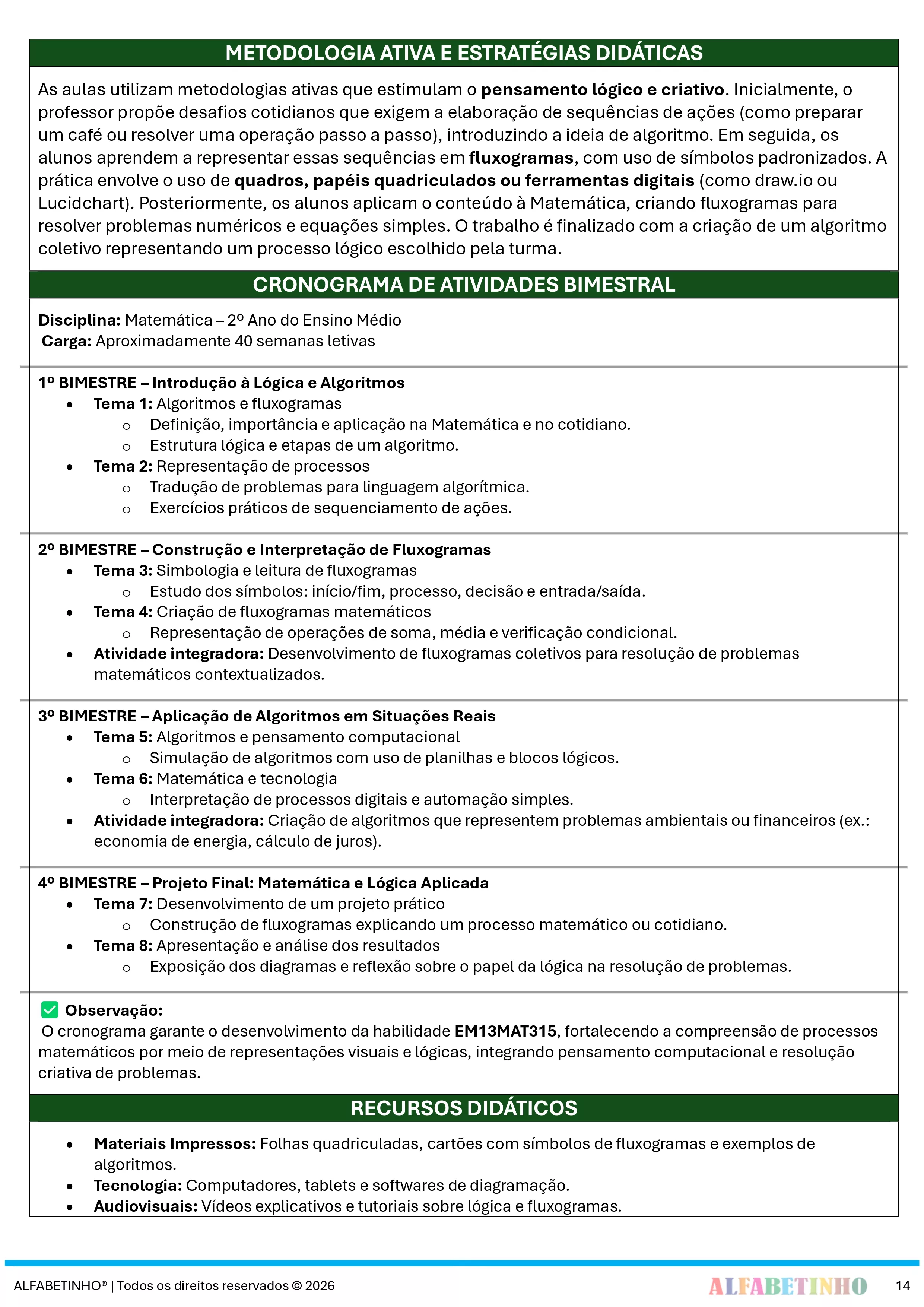 Desenvolvido com base nas diretrizes da Base Nacional Comum Curricular 2026, garantindo o alinhamento com as exigências educacionais atuais.