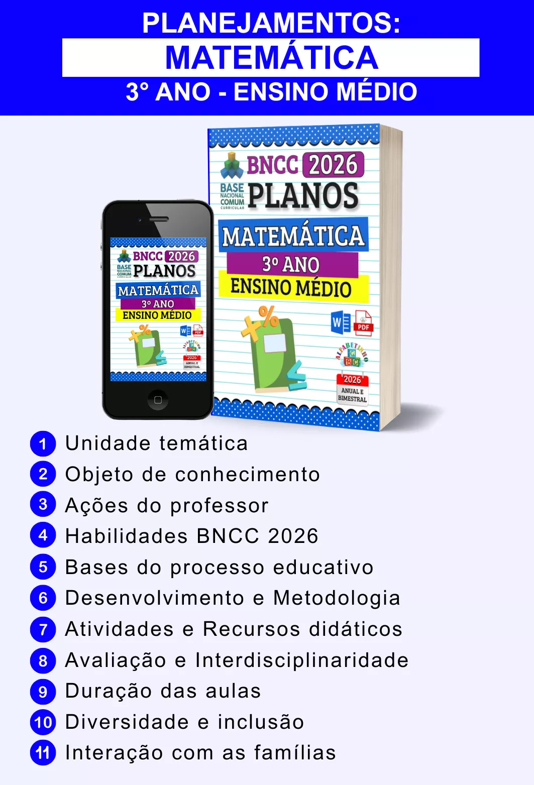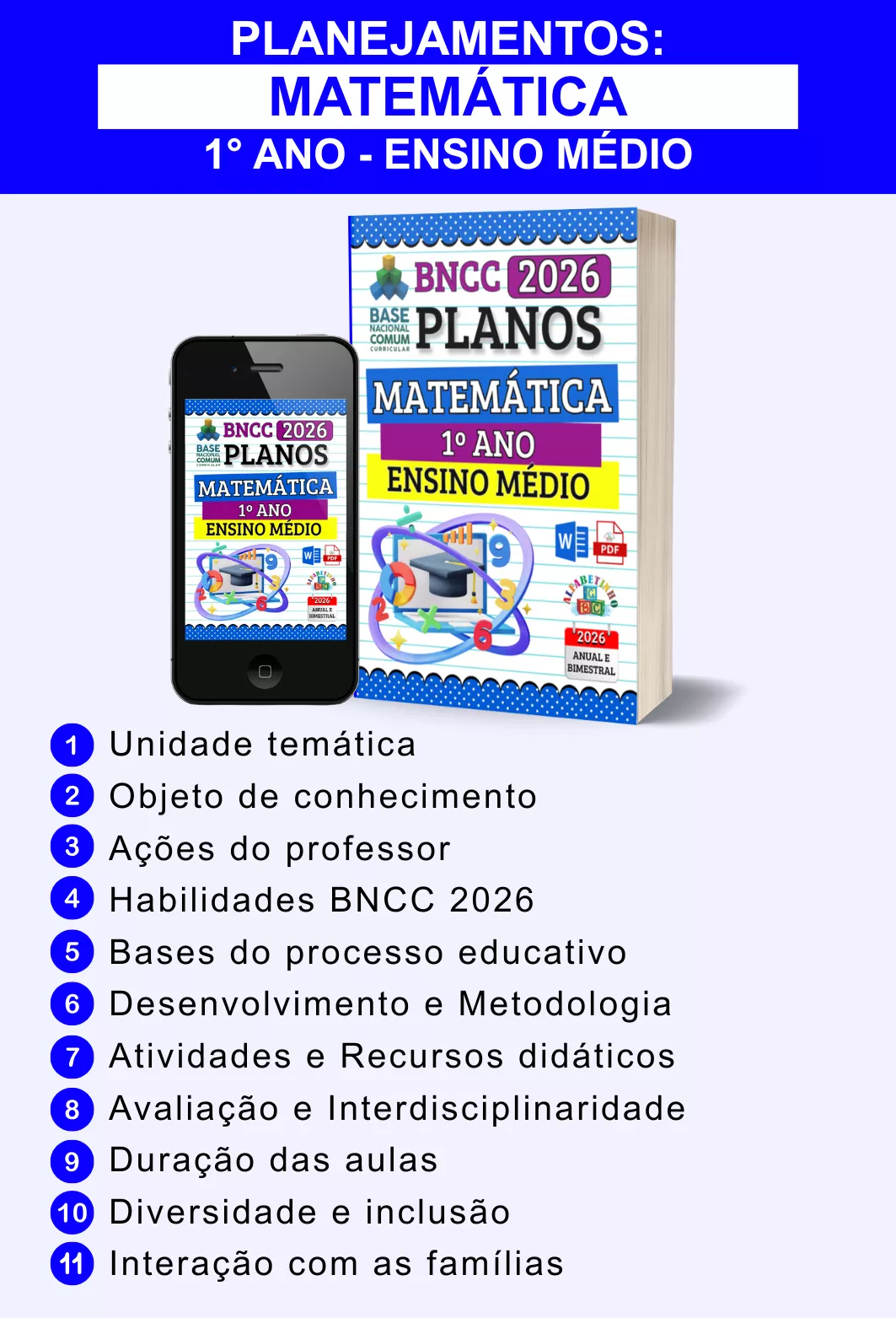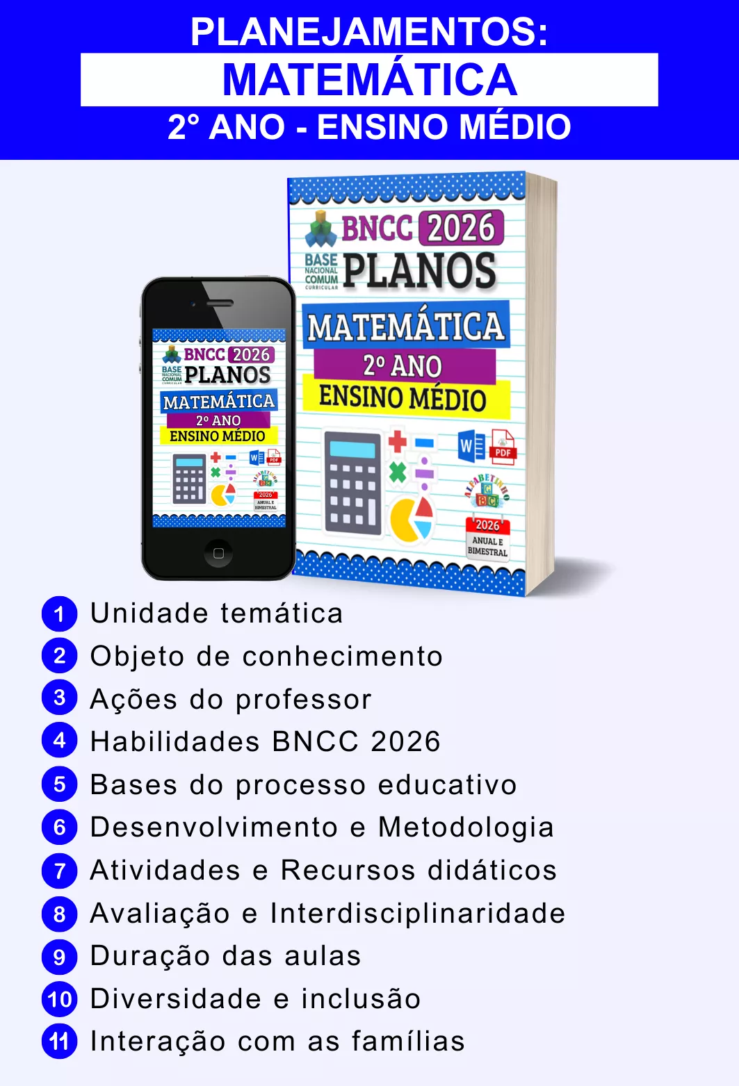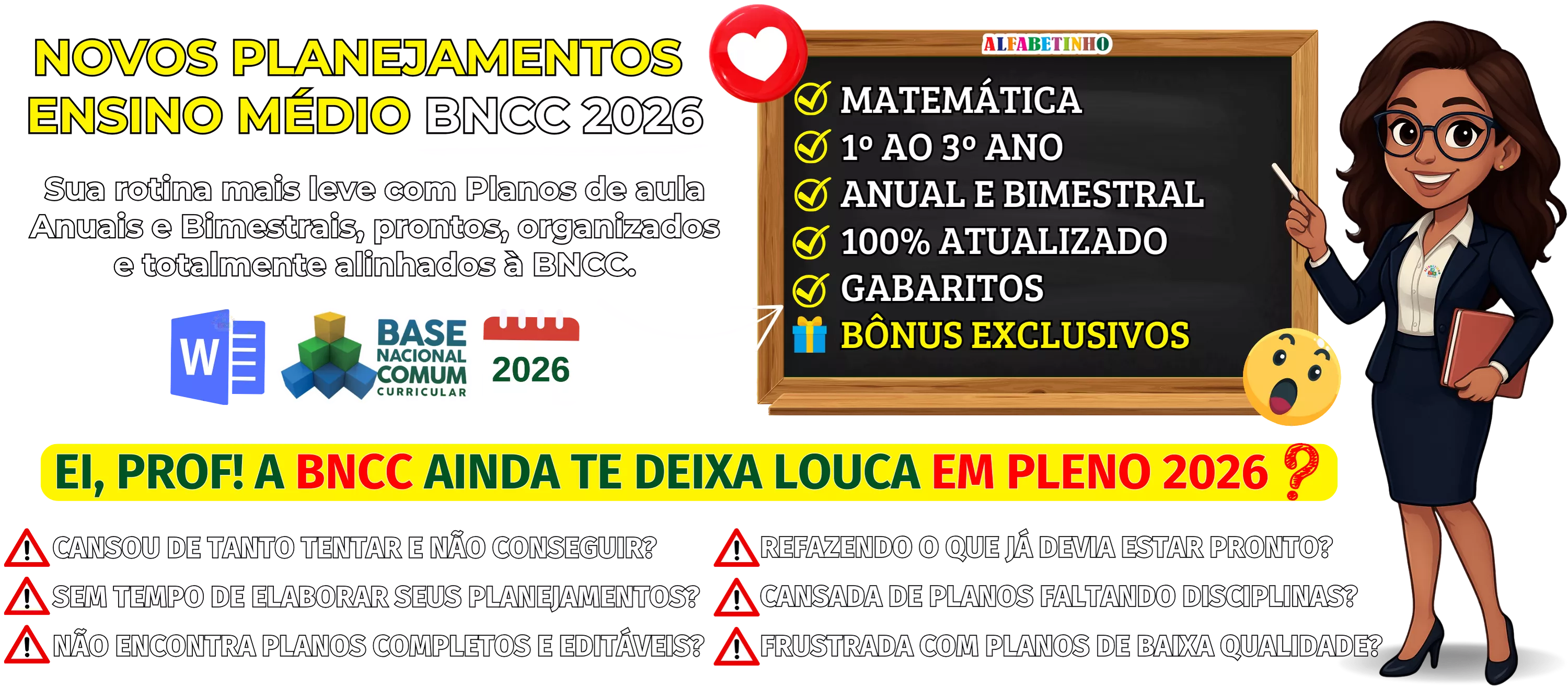 Planejamentos anuais e bimestrais completos, atualizados conforme a BNCC 2026, totalmente editáveis no Word e adaptáveis à sua realidade escolar. Praticidade, qualidade e inspiração para professores que amam ensinar!