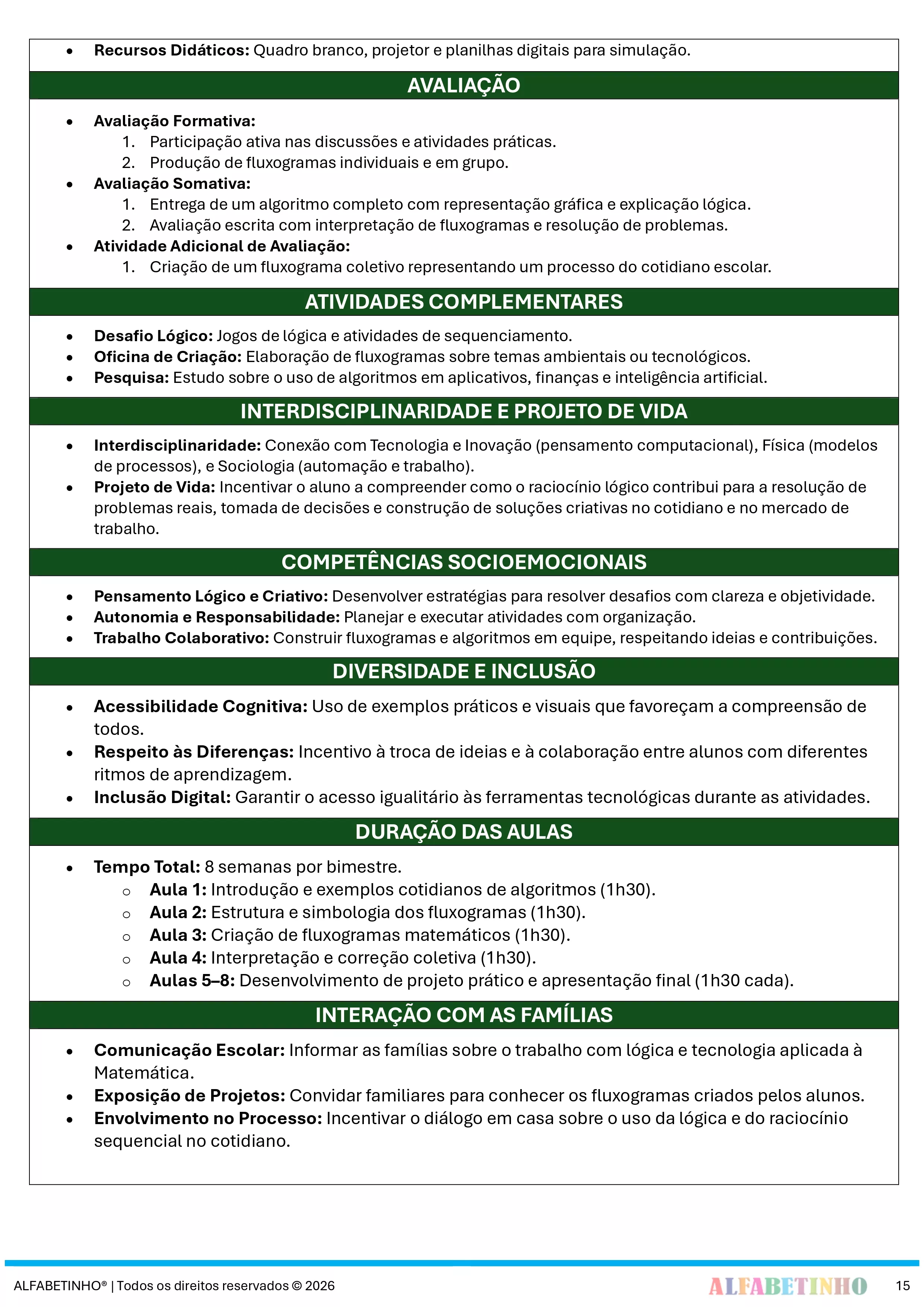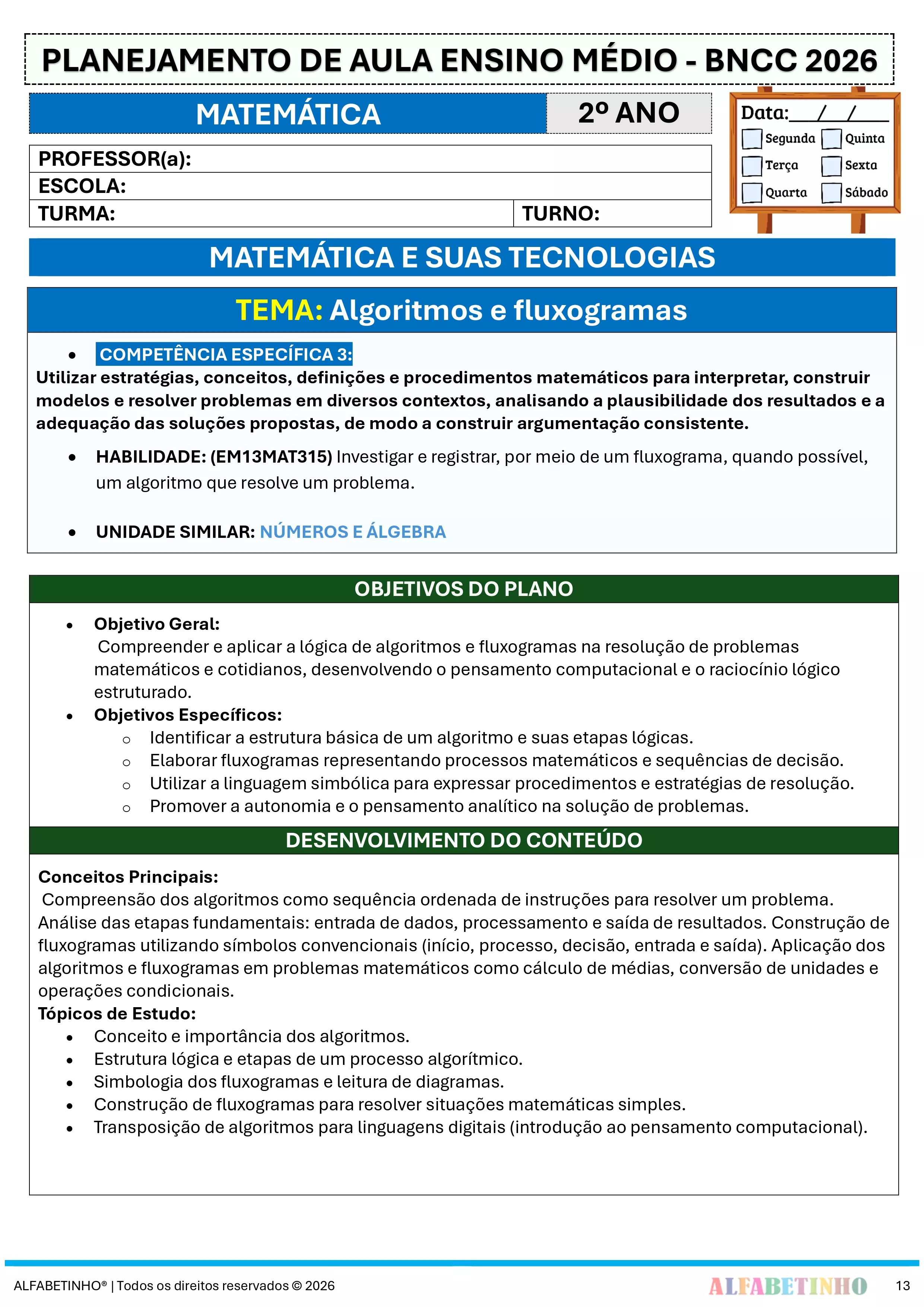 ✓ Procura Planos alinhados com todos os Códigos da BNCC 2026;
