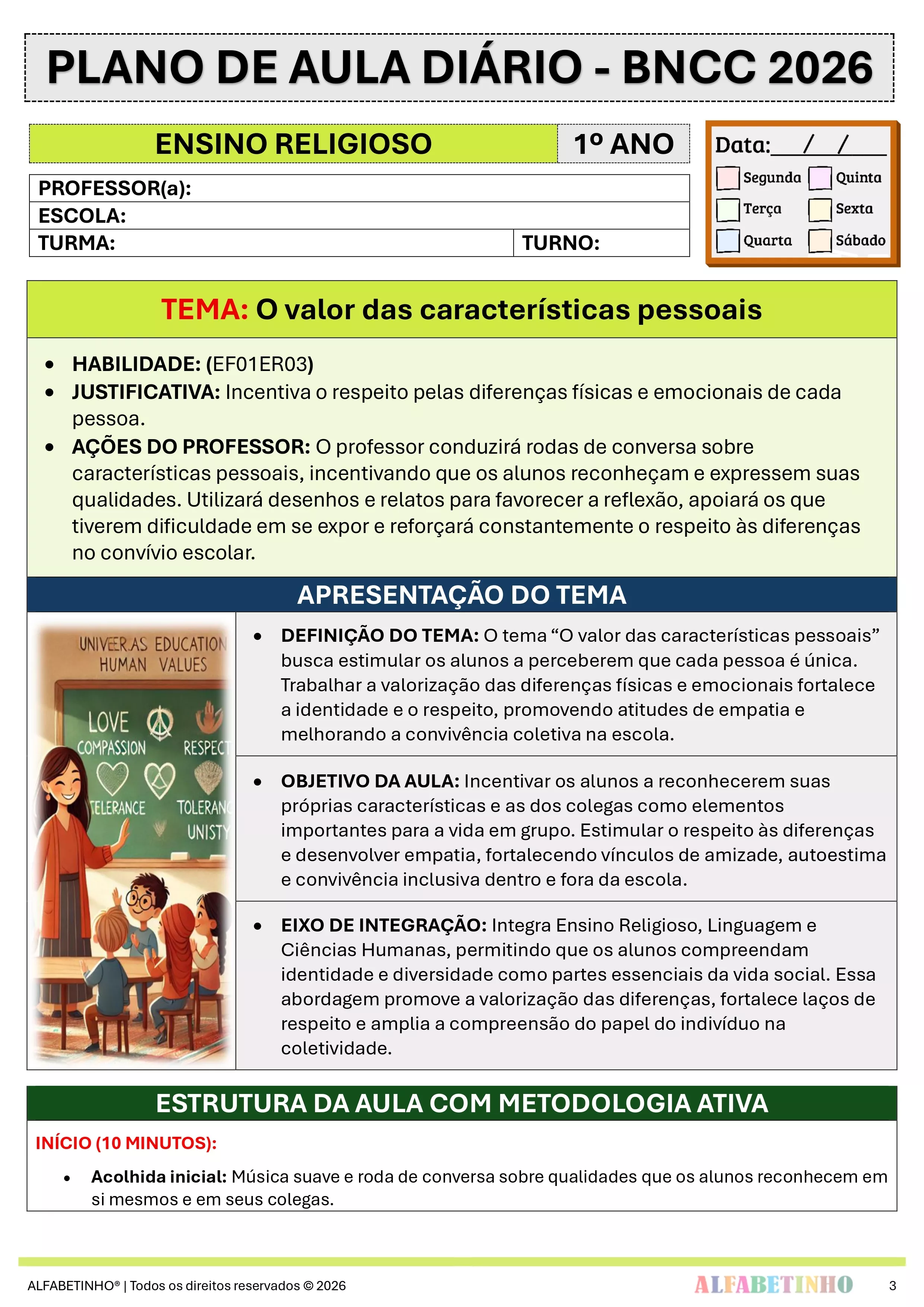 Essa é apenas uma pequena amostra dos Planos Diários. O material completo contém mais de 208 planos, e todos eles editáveis!