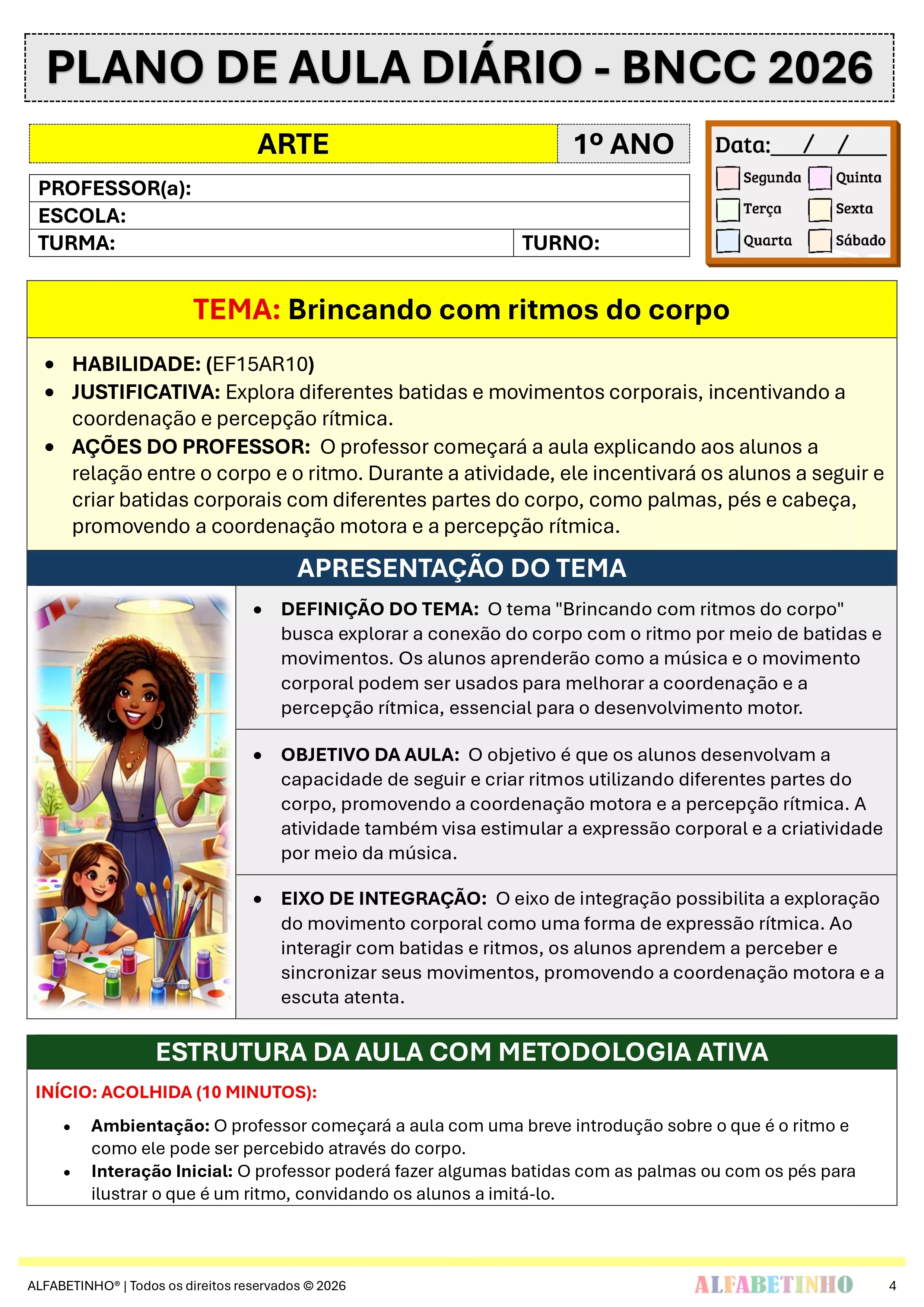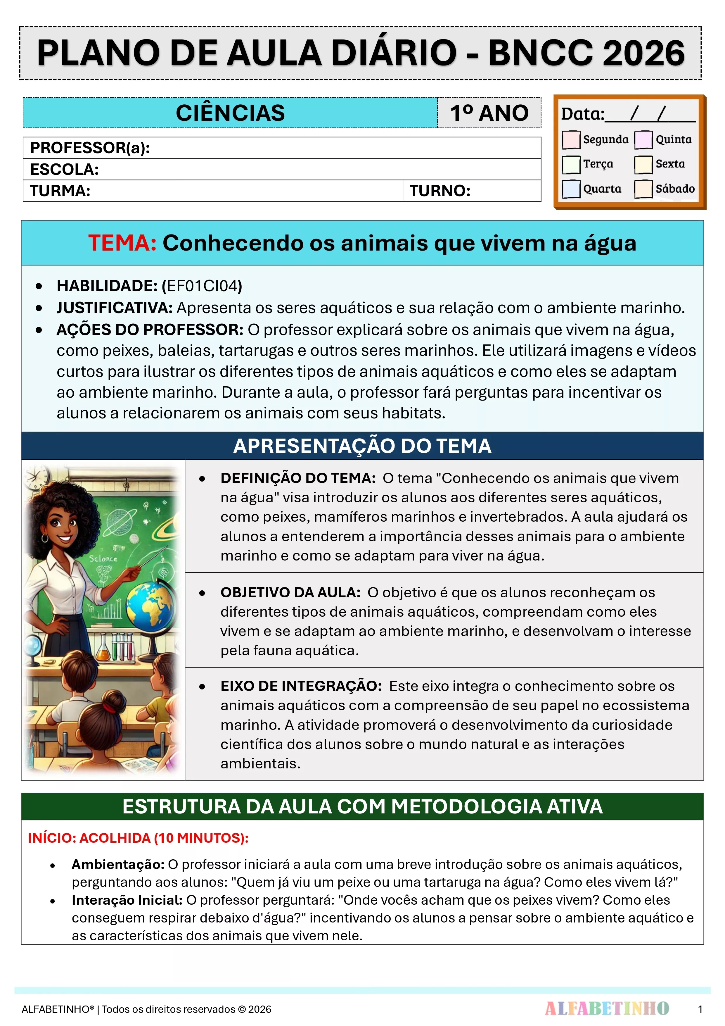 Planos Diários completos, atualizados conforme a BNCC 2026, totalmente editáveis no Word e adaptáveis à sua realidade escolar. Praticidade, qualidade e inspiração para professores que amam ensinar!