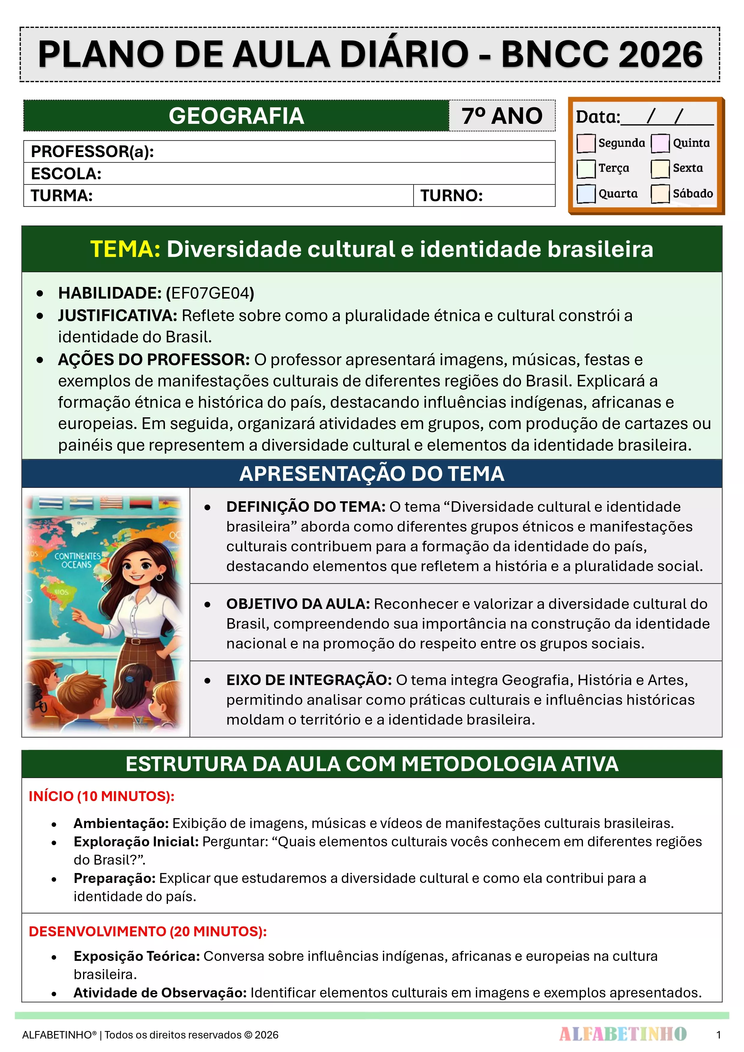 Desenvolvido com base nas diretrizes da Base Nacional Comum Curricular 2026, garantindo o alinhamento com as exigências educacionais atuais.