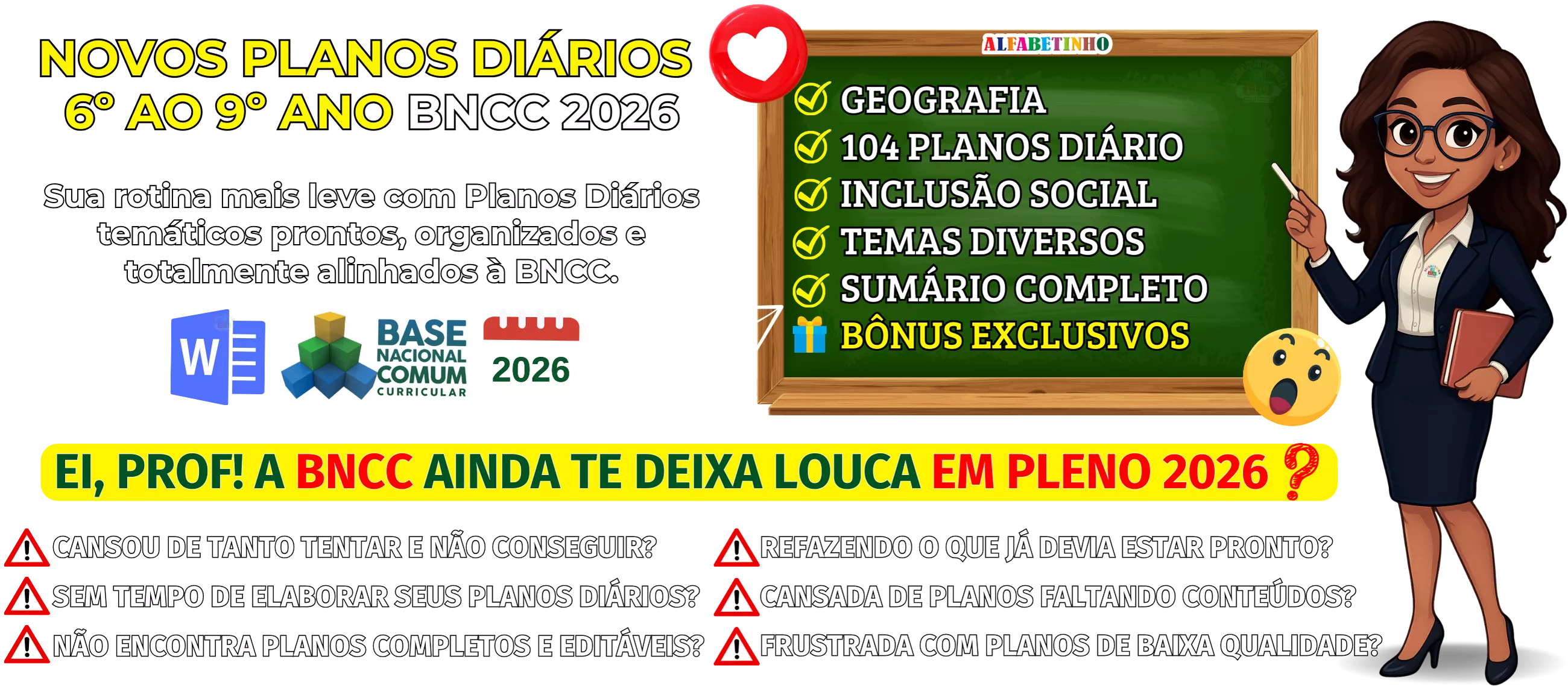 BNCC 2026, totalmente editáveis no Word e adaptáveis à sua realidade escolar. Praticidade, qualidade e inspiração para professores que amam ensinar!