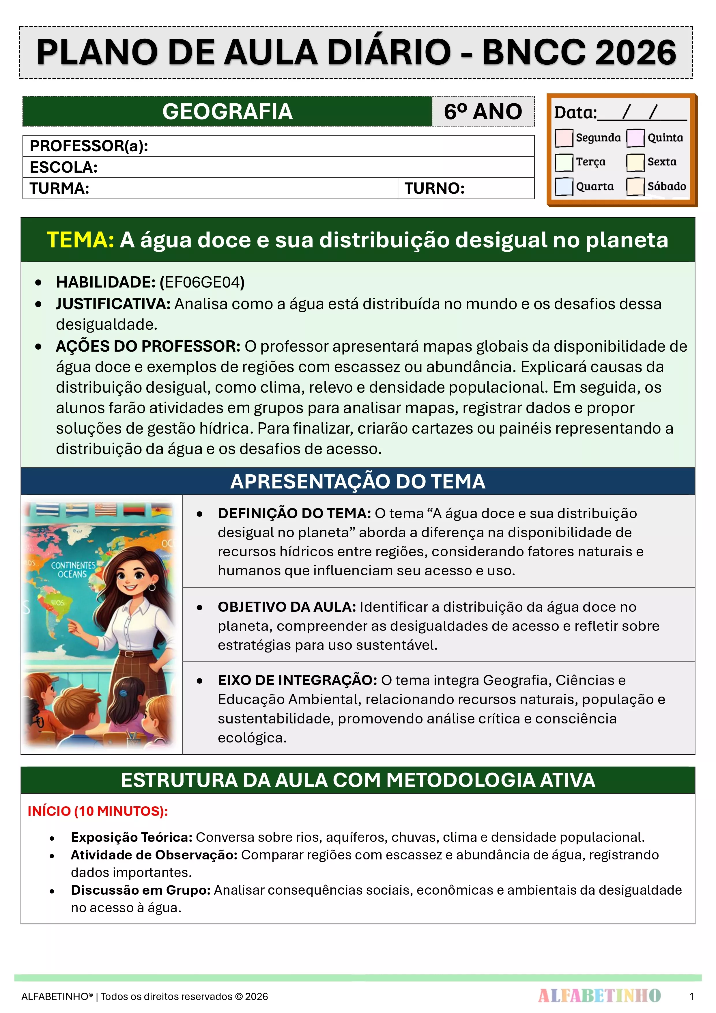 Planos Diários completos, atualizados conforme a BNCC 2026, totalmente editáveis no Word e adaptáveis à sua realidade escolar. Praticidade, qualidade e inspiração para professores que amam ensinar!