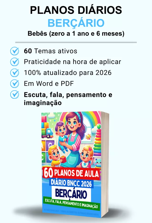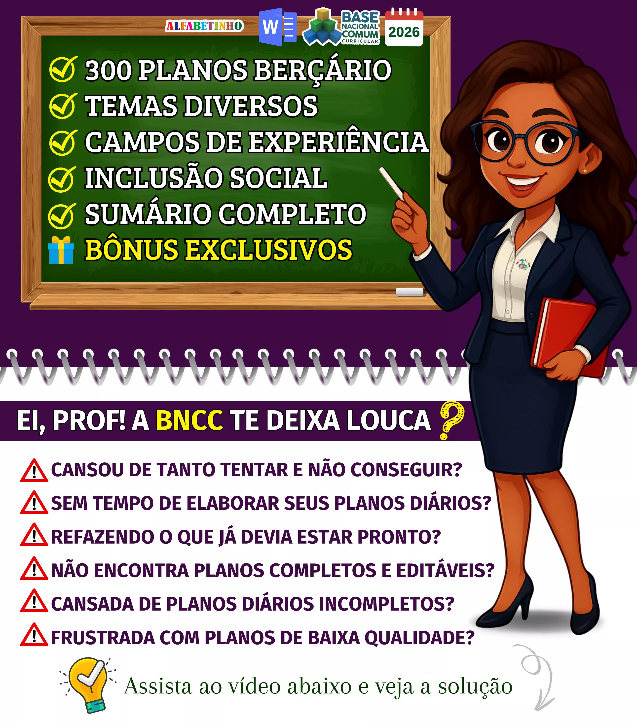 Planos Diários completos, atualizados conforme a BNCC 2026, totalmente editáveis no Word e adaptáveis à sua realidade escolar. Praticidade, qualidade e inspiração para professores que amam ensinar!