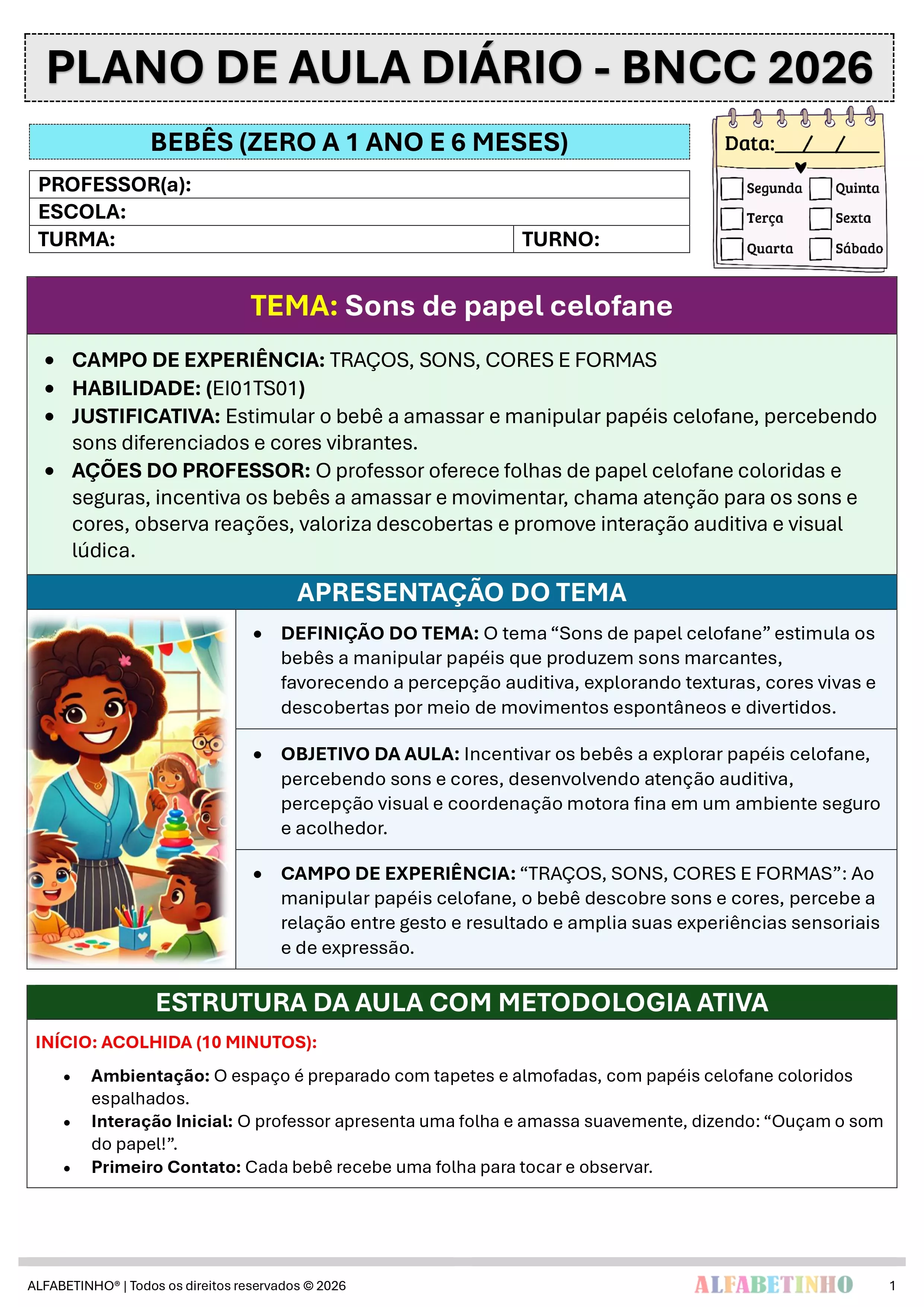 Desenvolvido com base nas diretrizes da Base Nacional Comum Curricular 2026, garantindo o alinhamento com as exigências educacionais atuais.