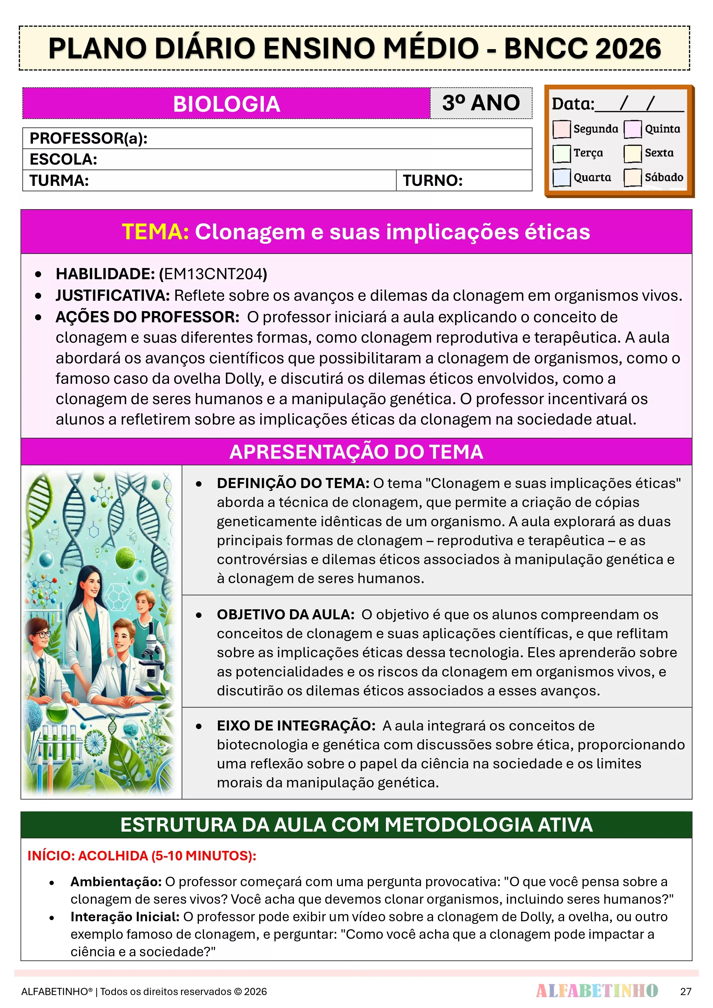 Essa é apenas uma pequena amostra dos Planos Diários. O material completo contém mais de 120 planos, e todos eles editáveis!