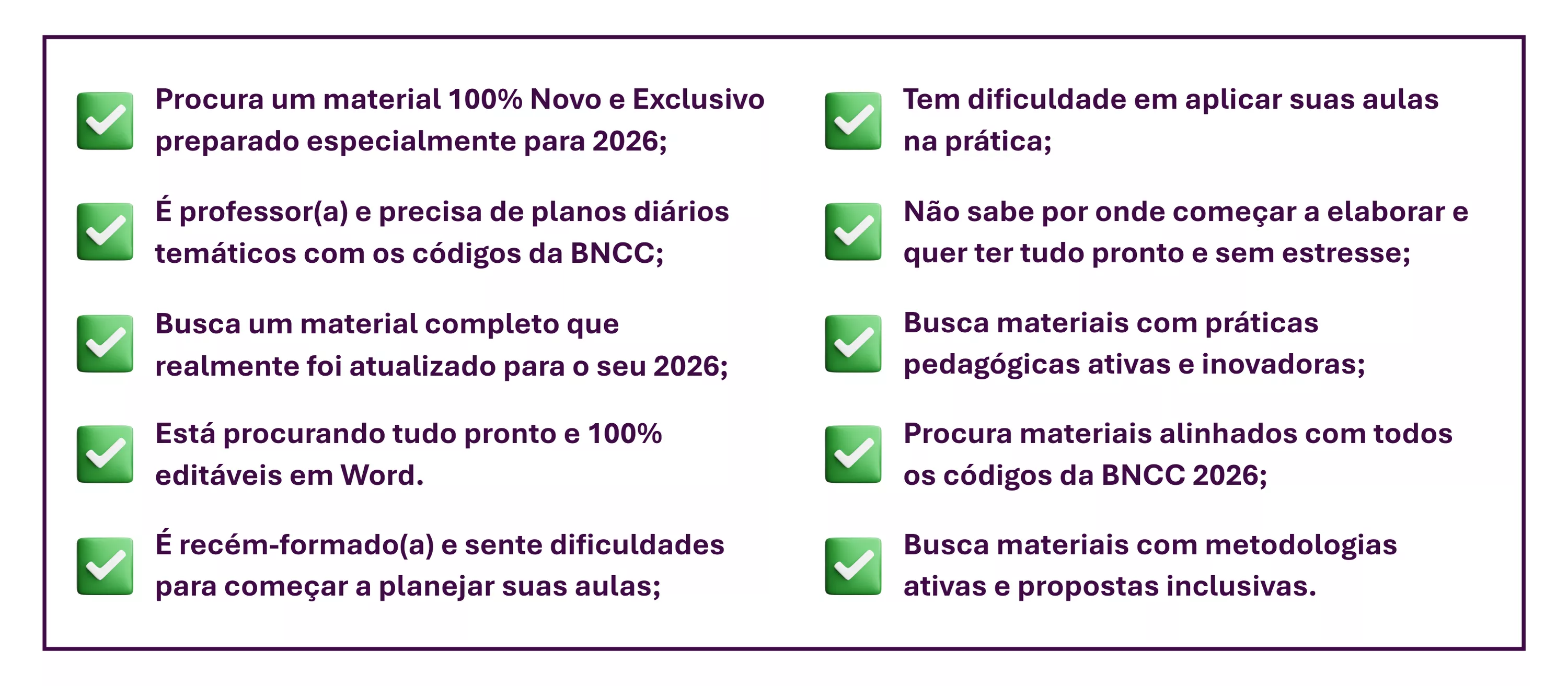 Procura materiais alinhados com todos os Códigos da BNCC 2026;