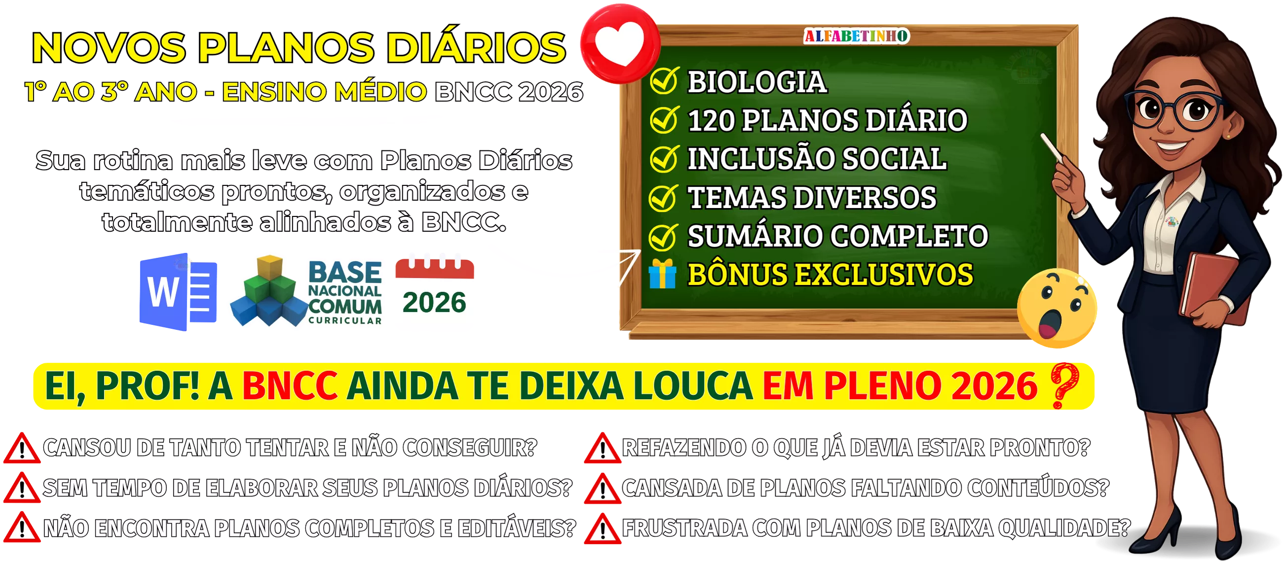 BNCC 2026, totalmente editáveis no Word e adaptáveis à sua realidade escolar. Praticidade, qualidade e inspiração para professores que amam ensinar!