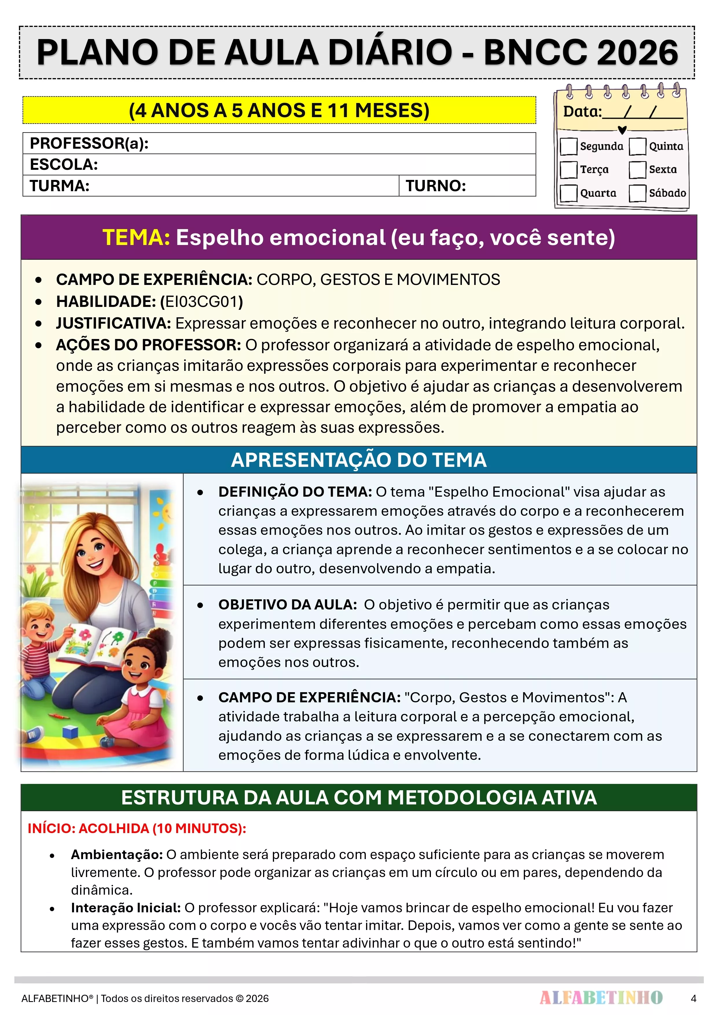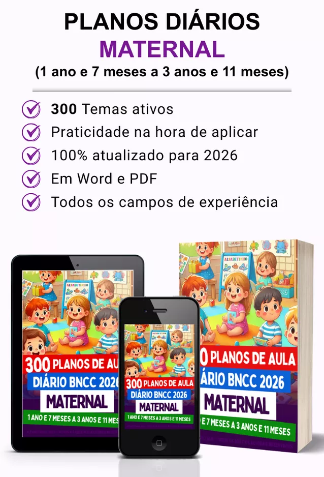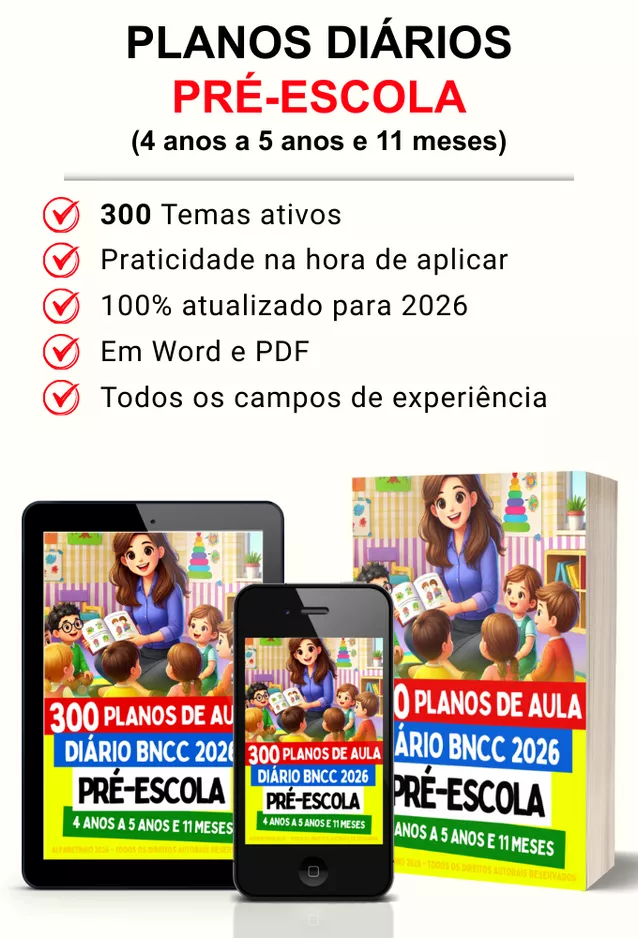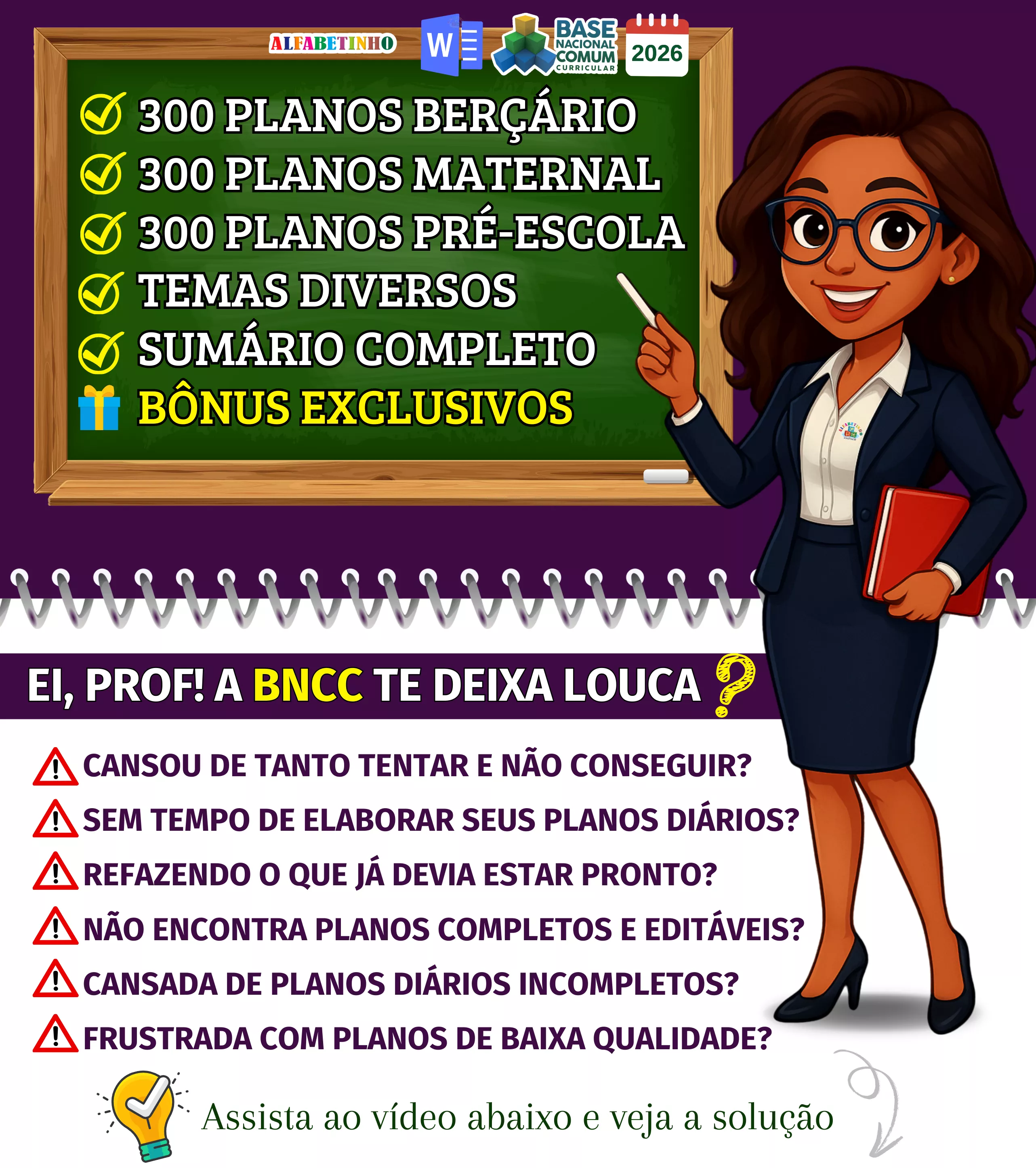 Planos Diários completos, atualizados conforme a BNCC 2026, totalmente editáveis no Word e adaptáveis à sua realidade escolar. Praticidade, qualidade e inspiração para professores que amam ensinar!