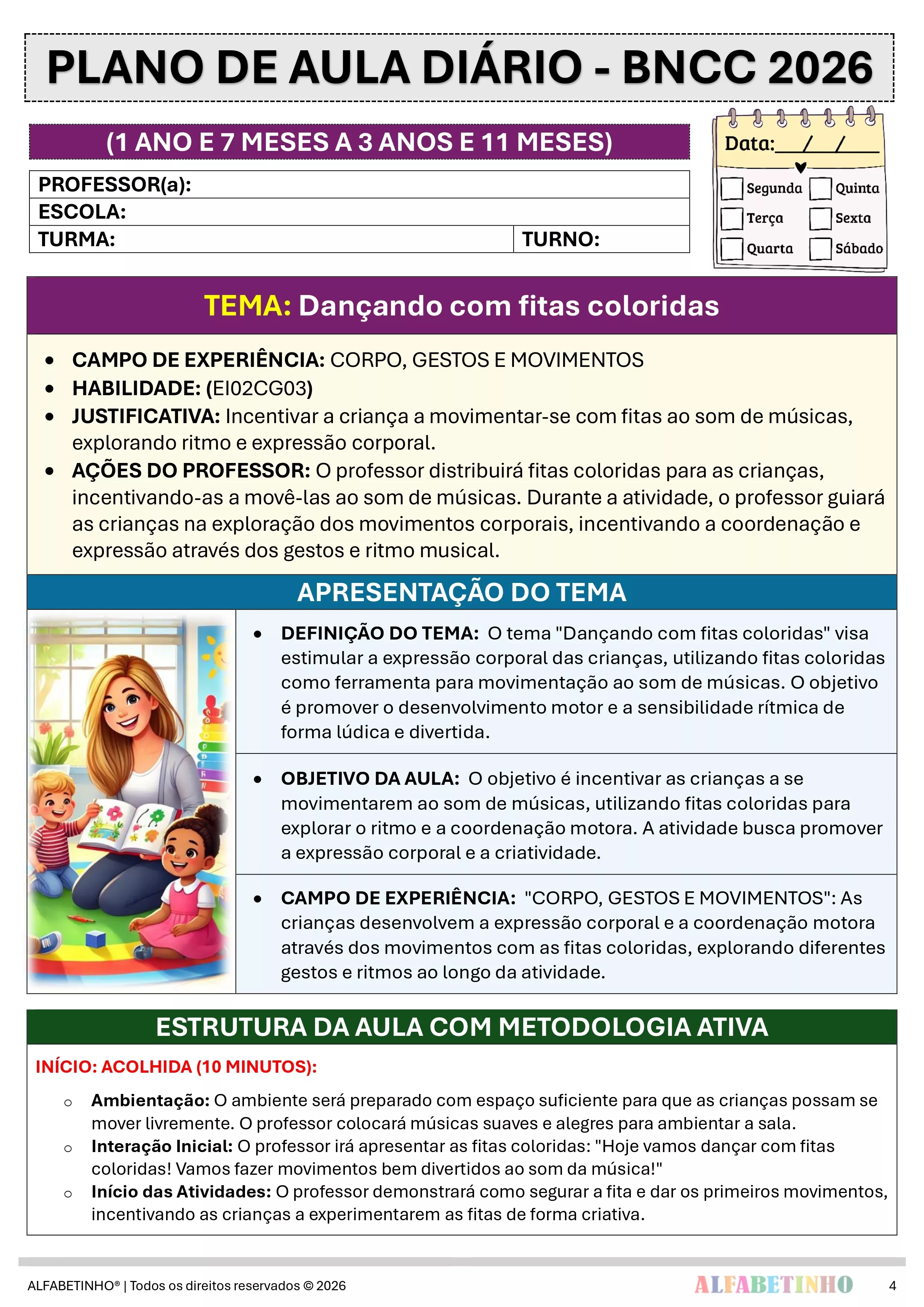 Sua rotina mais leve com Planos Diários prontos, organizados e totalmente alinhados à BNCC.
