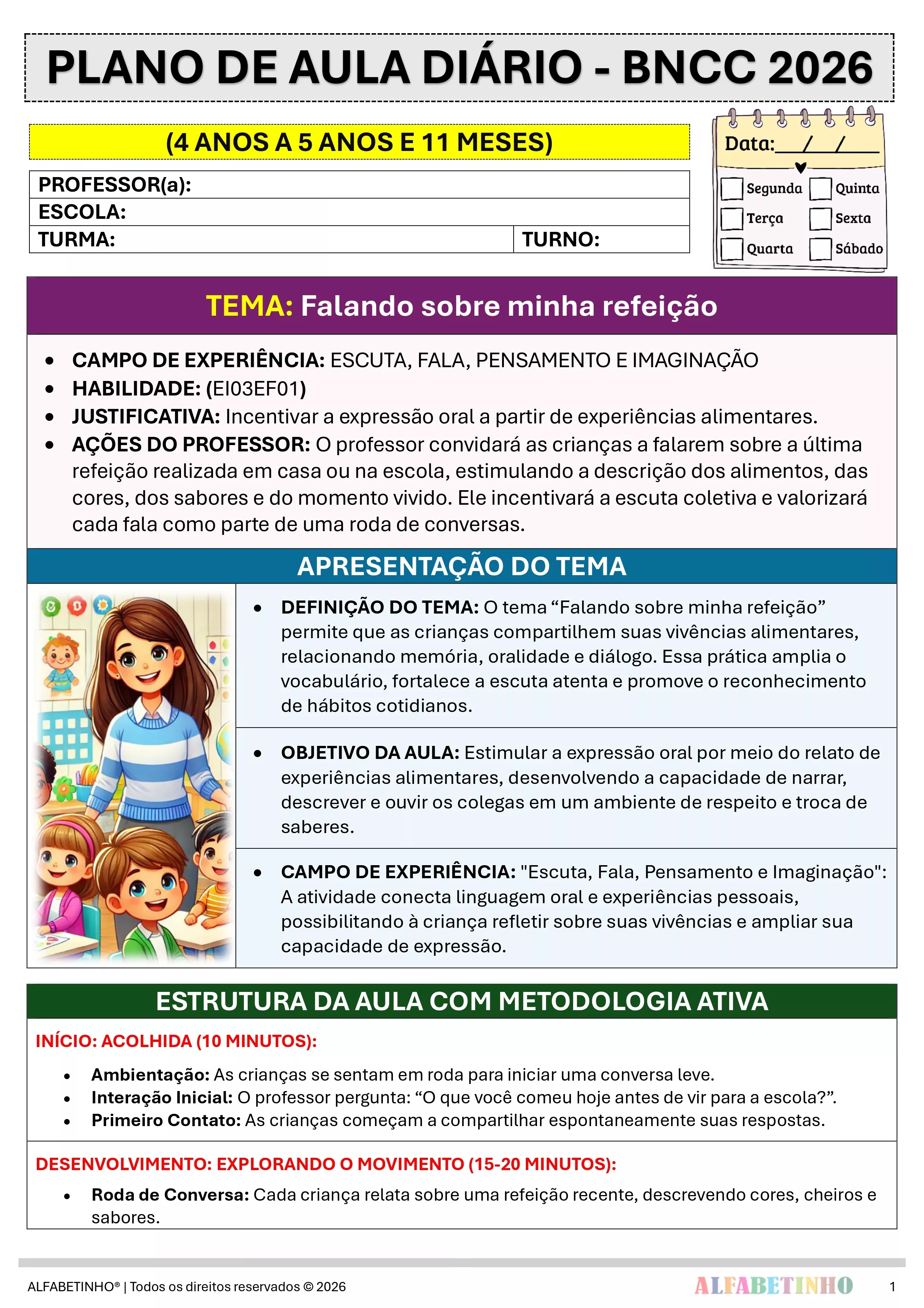 ✓ Planos Diários com os códigos da BNCC e editáveis em Word;