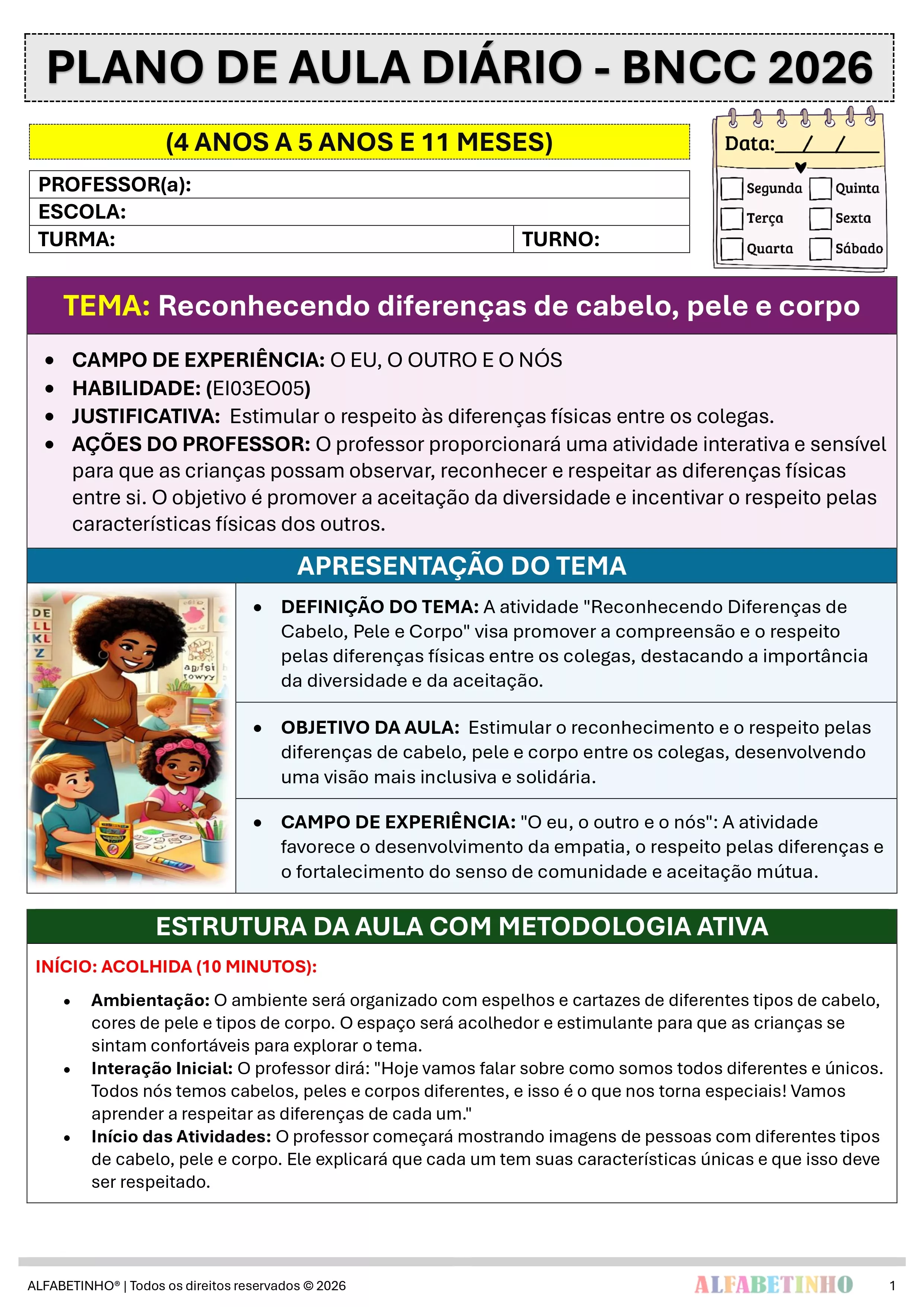 Essa é apenas uma pequena amostra dos Planos Diários. O material completo contém mais de 300 planos, e todos eles editáveis!