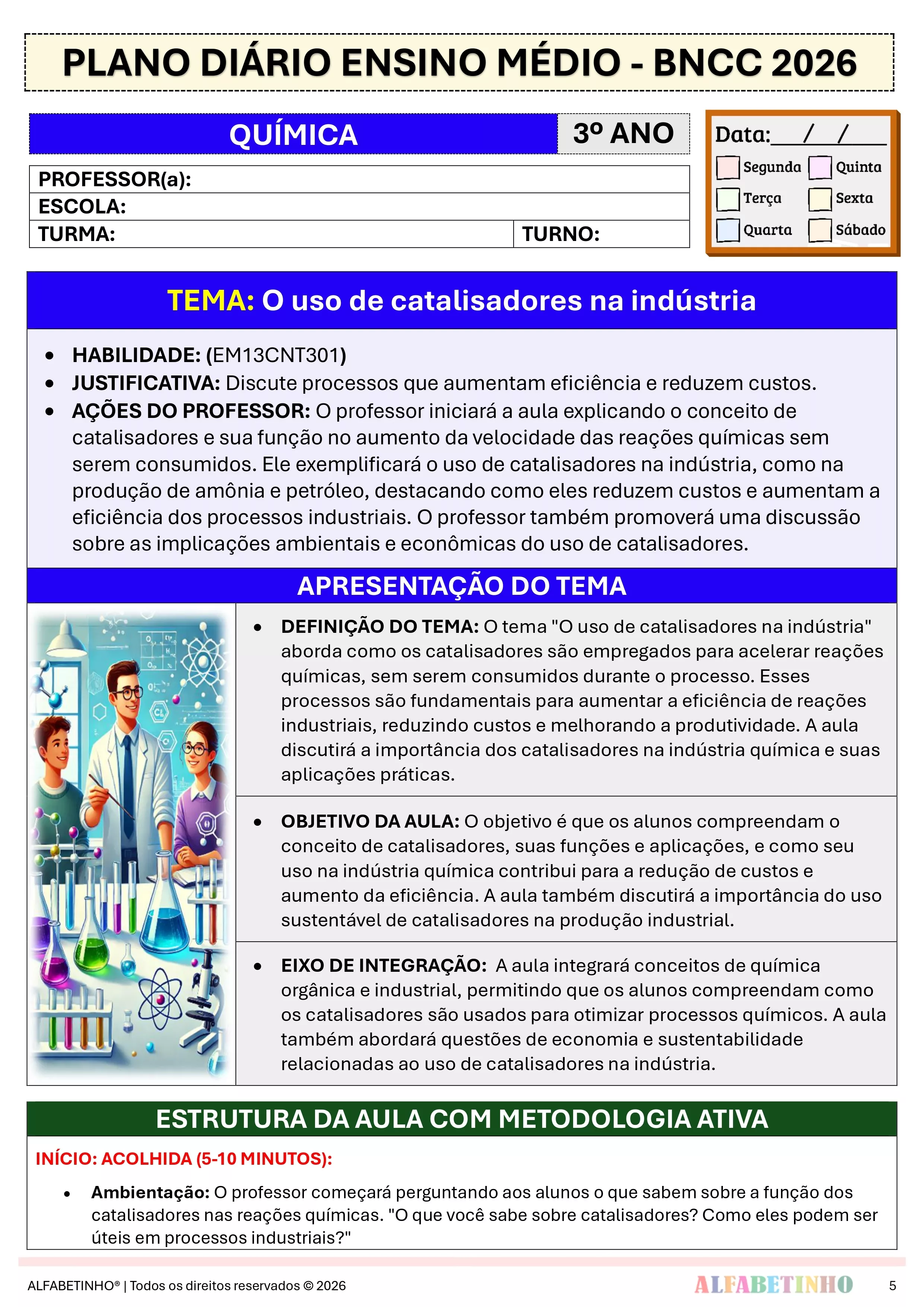 Essa é apenas uma pequena amostra dos Planos Diários. O material completo contém mais de 120 planos, e todos eles editáveis!