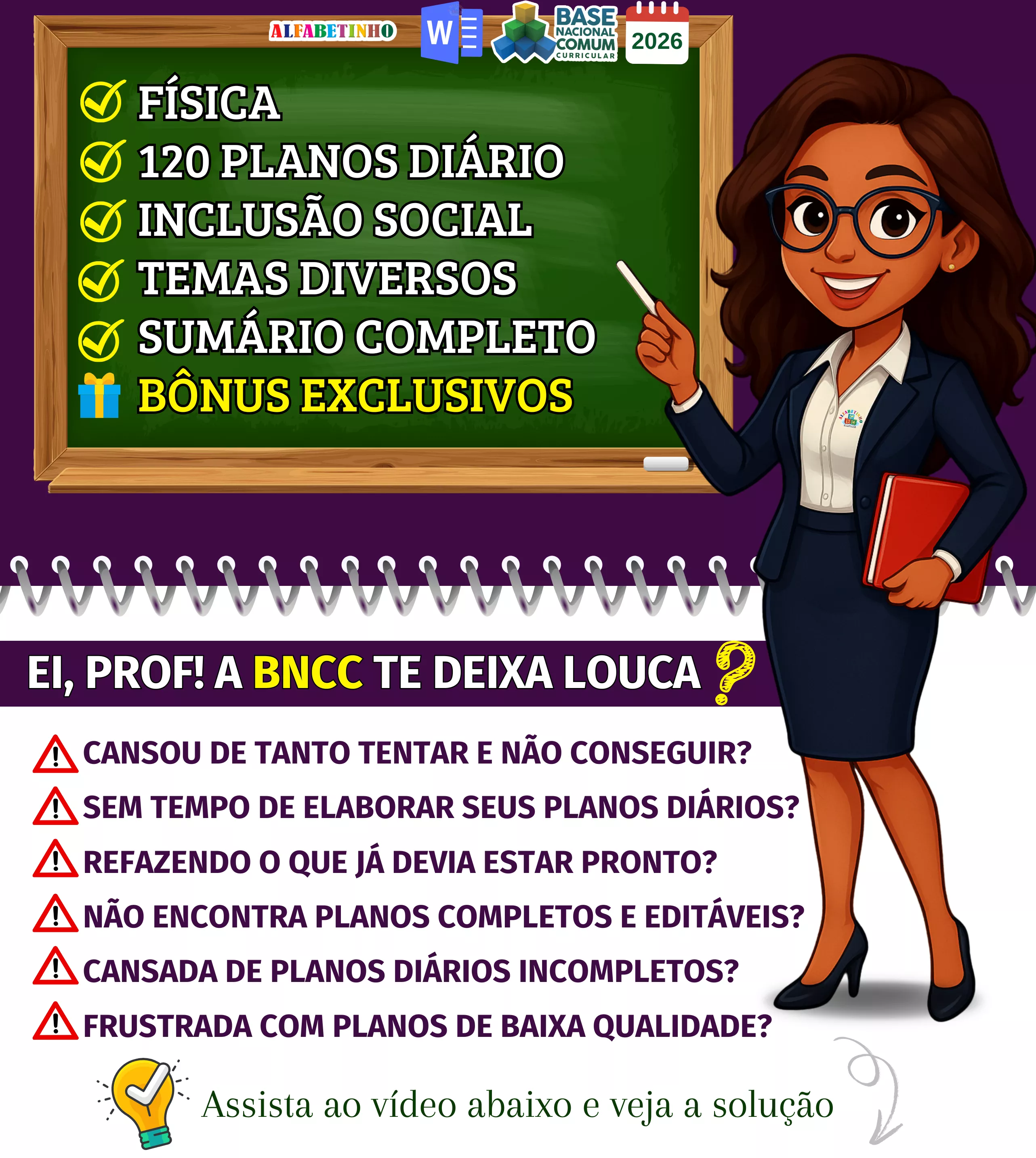 Planos Diários completos, atualizados conforme a BNCC 2026, totalmente editáveis no Word e adaptáveis à sua realidade escolar. Praticidade, qualidade e inspiração para professores que amam ensinar!
