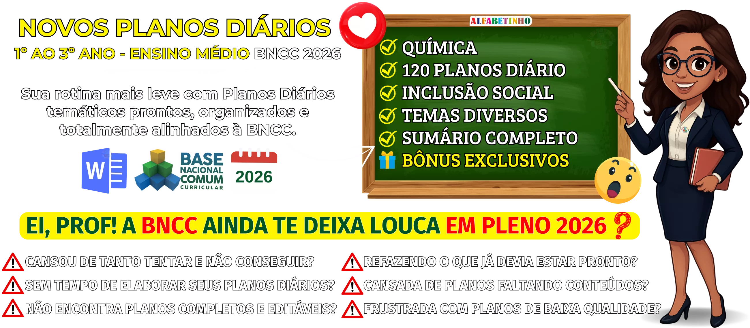 BNCC 2026, totalmente editáveis no Word e adaptáveis à sua realidade escolar. Praticidade, qualidade e inspiração para professores que amam ensinar!