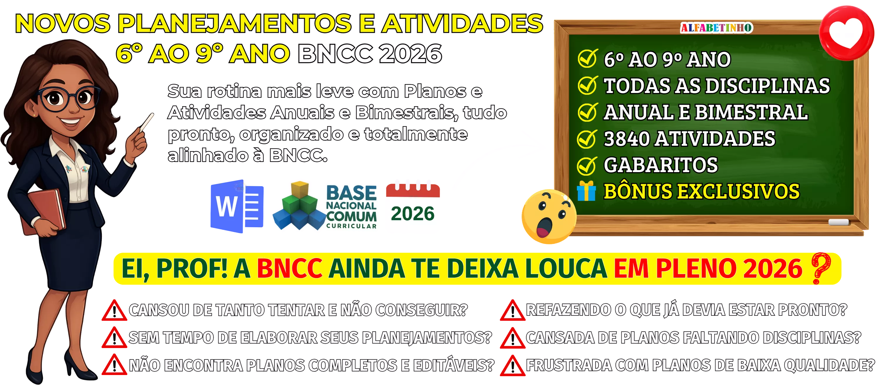 BNCC 2026, totalmente editáveis no Word e adaptáveis à sua realidade escolar. Praticidade, qualidade e inspiração para professores que amam ensinar!
