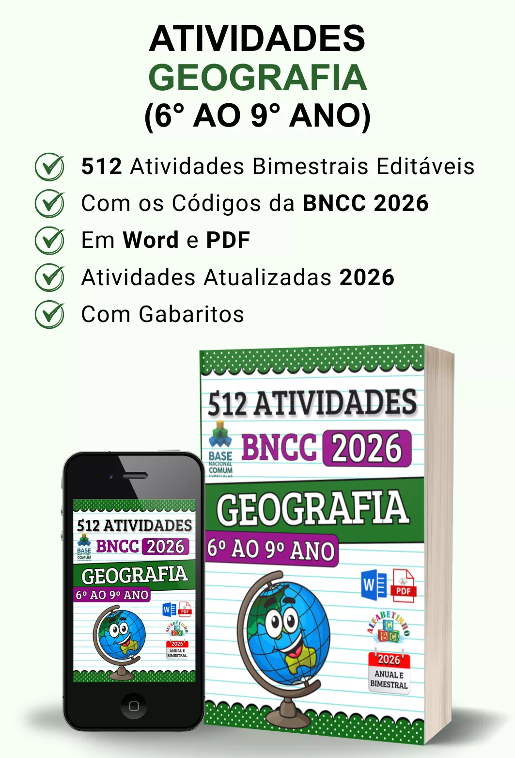 ✓ Atividades com gabaritos e alinhadas à BNCC 2026;